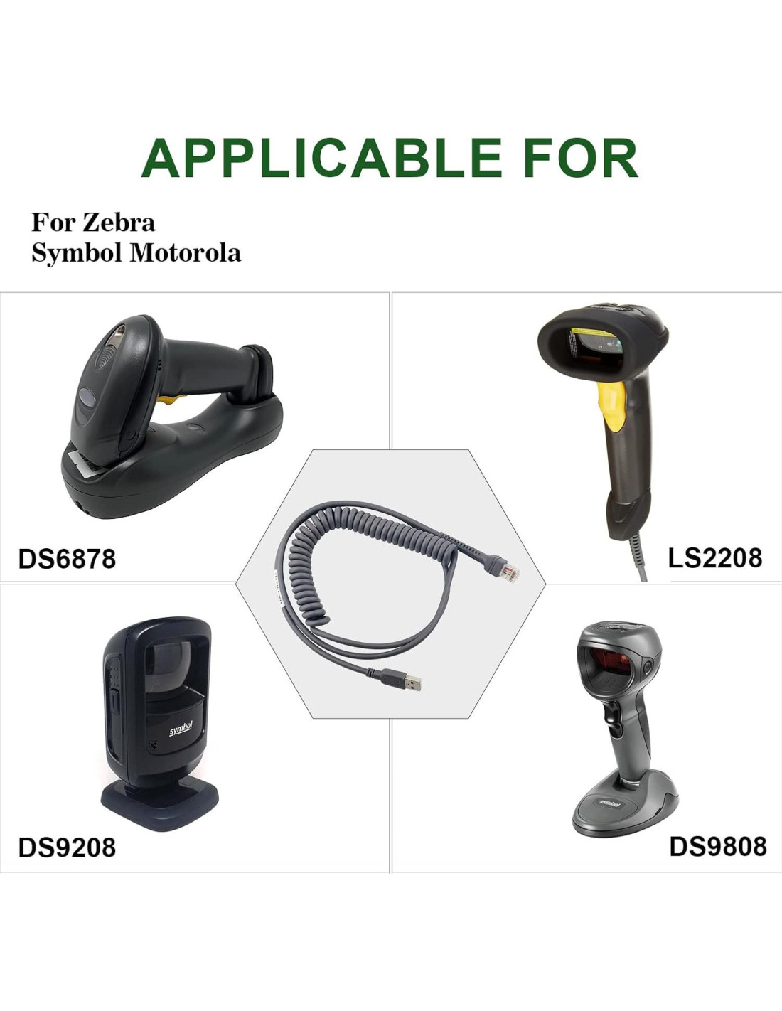 - CBA-U01-S07ZAR Compatible con el modelo de escáner de código de barras Zebra: LS2208/AP/SR, LI2208, LS20007R-NA, LS1203, LS4008I, LS4208, LS3008, LS3408, LS4278, LS3478, LS3578, LS9208i, LS9203i, LS7708, LS7808, DS2208, DS2208-SR, DS3400, DS3408, DS3508, DS3478, DS3578, DS4208, DS4308/XD, DS6608, DS6707, DS6708 DS6700, DS6878, DS6878, DS8108, DS8178, DS9208, DS9808, DS9908, STB3578, STB4278, CS3070, etc.
