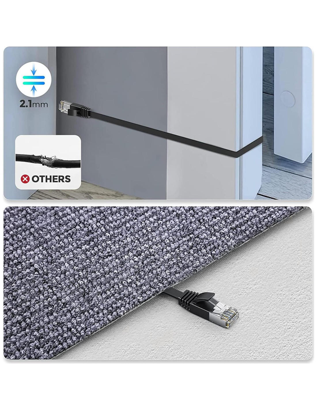 - El diseño del cable plano es más conveniente para la instalación y el uso. Te permite ejecutar el cable fácilmente y sin problemas a lo largo de paredes, seguir bordes y esquinas, o incluso hacerlo completamente invisible deslizándolo debajo de una alfombra.