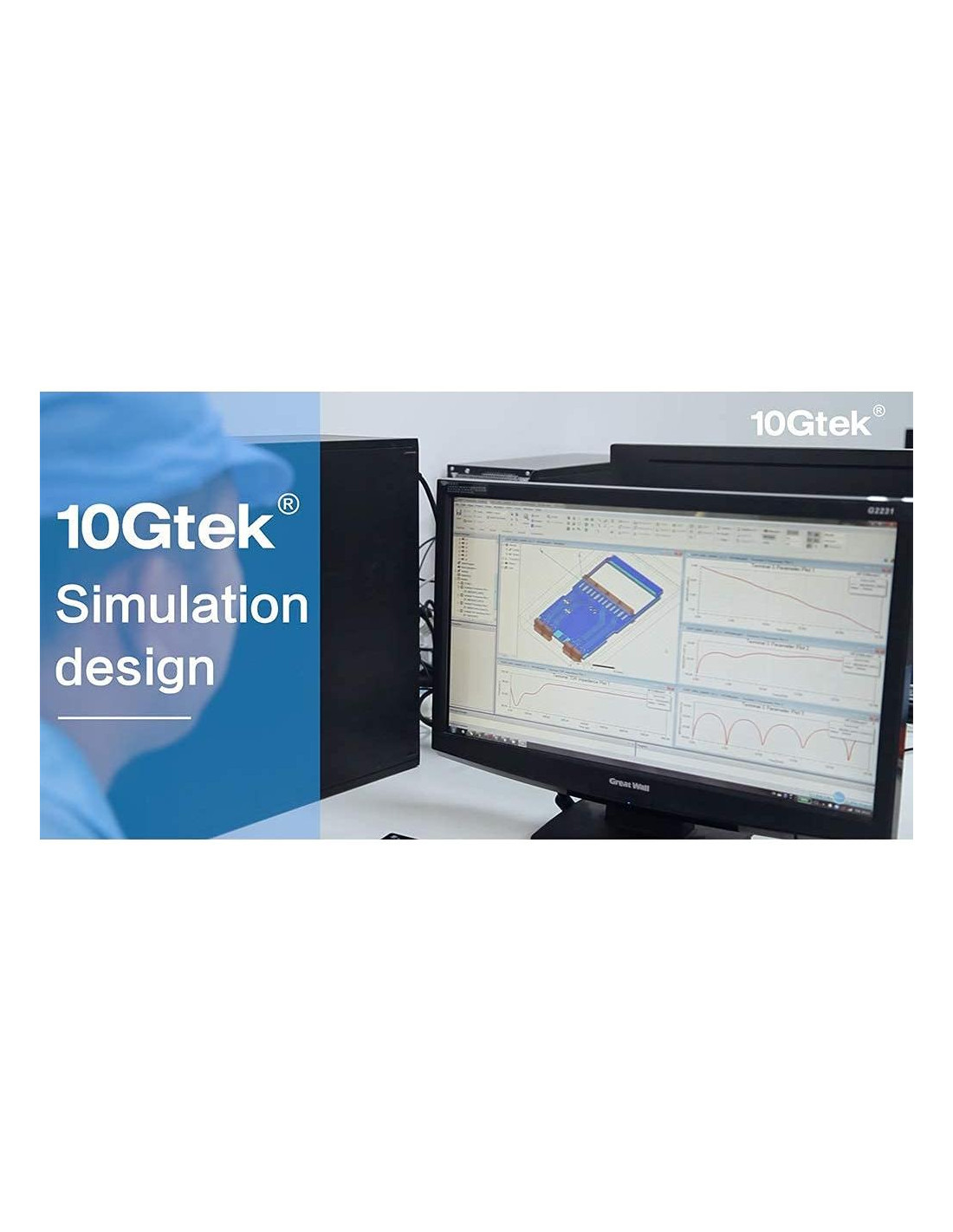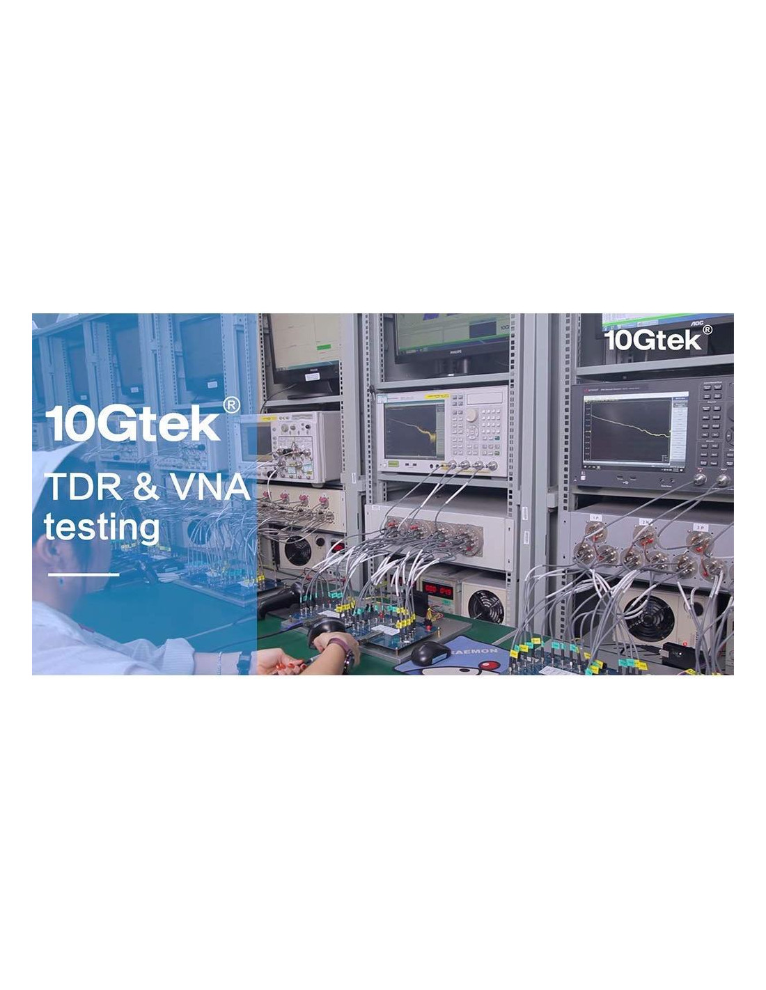 - La línea de ensamblaje automática de 10Gtek asegura la consistencia de la fabricación bajo el proceso de corte láser, despojo de blindaje de aluminio, despojo de aislador, remodelación automática, soldadura automática y curado por rayos ultravioleta. Cada cable DAC toma la medición TDR y VNA, garantizando pasar la prueba de integridad de señal.