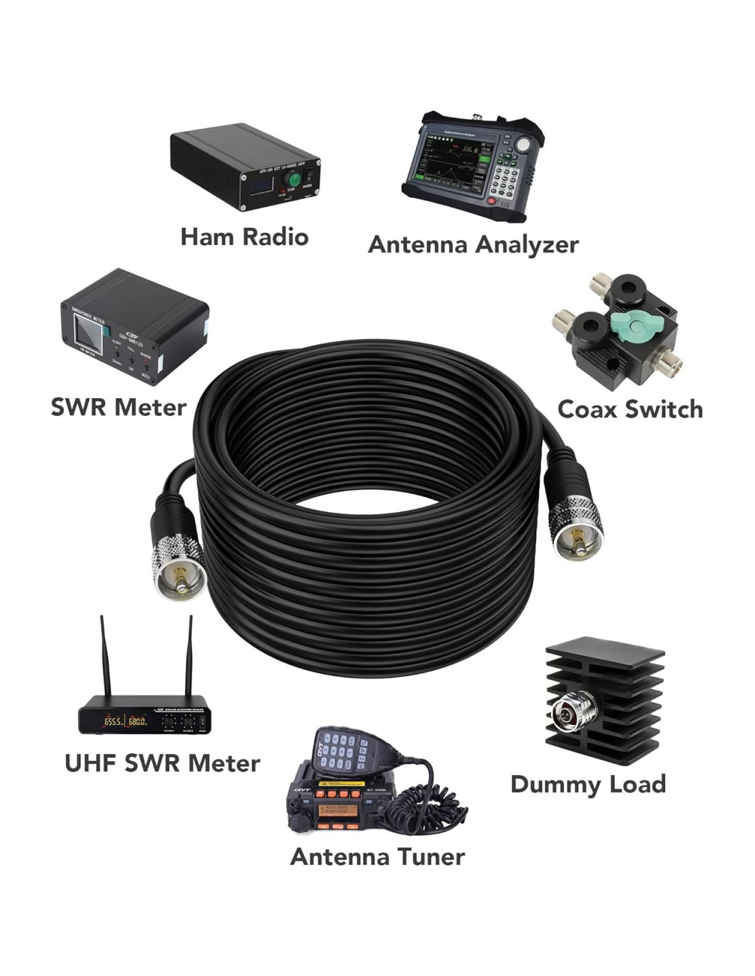 - Amplia Gama de Compatibilidad: El extensor de cable coaxial RG8X es adecuado para cualquier sistema RF de 50 ohmios como Radioaficionados CB, Analizadores de Antena, Sintonizadores de Antena, Cargas Falsas, Medidores SWR, Transceptores de Antena y más. Especialmente adecuado para instalaciones de CB en Jeep Wrangler.