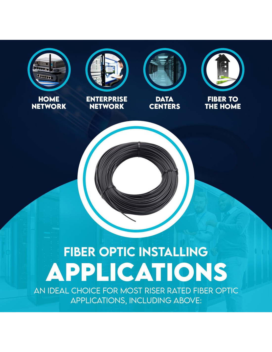 - Uso versátil: Este cable es adecuado para instalaciones tanto interiores como exteriores, lo que lo hace perfecto para una amplia gama de aplicaciones, incluyendo telecomunicaciones, centros de datos y redes LAN.