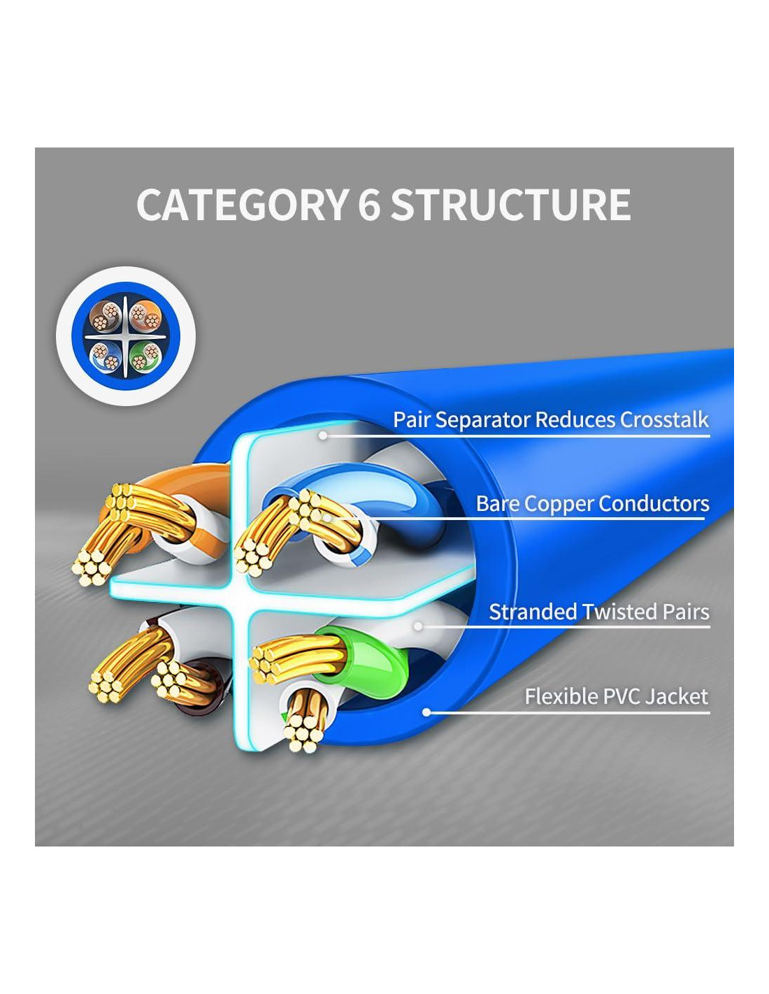- Rendimiento Cat 6: Cumple con TIA/EIA-568C.2 y listado por UL, los conductores son de alambre de cobre trenzado de 24 AWG que proporciona hasta 10 Gigabits Ethernet Cat6, compatible hacia atrás con 10Base-T, 100base-tx (Ethernet rápido) y 1000Base-T (Ethernet Gigabit) para cable cat5e y Cat5 8P8C.