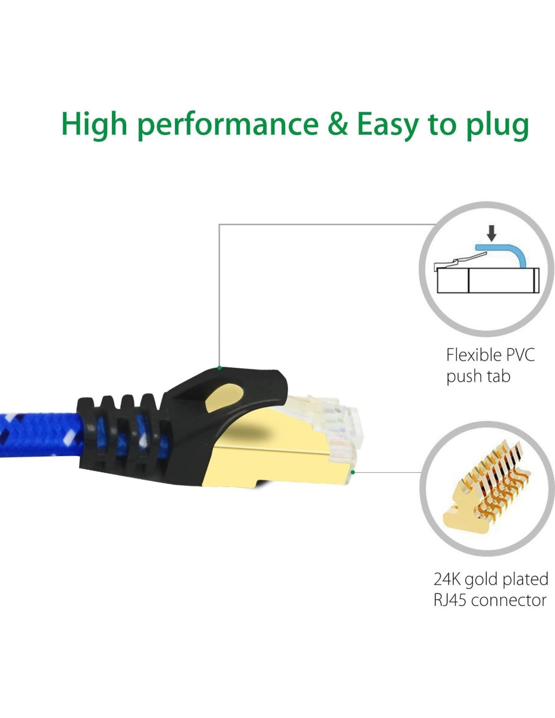 - El cable LAN Jeirdus Cat 7 soporta un ancho de banda de hasta 600MHz y transmite datos a velocidades de hasta 10Gbps, conectándose a segmentos LAN/WAN y equipos de red a velocidades máximas.