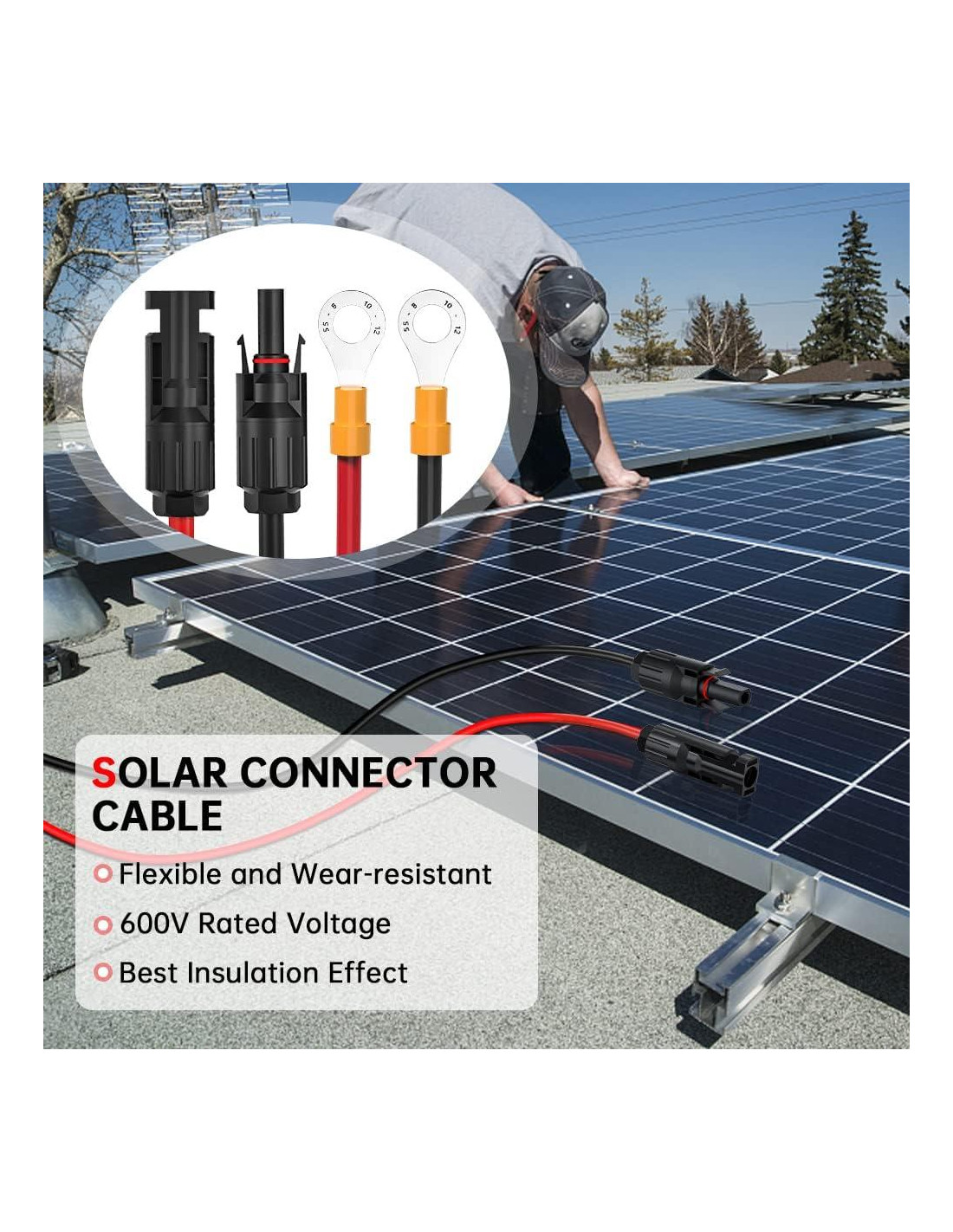 - DURADERO Y FÁCIL DE USAR - Kit de cable solar Electop 10AWG, plug and play, fácil de usar sin ninguna instalación. Ligero y flexible, conveniente y confiable, la mejor opción para cargar su estación de energía de generador solar portátil y casas rodantes.