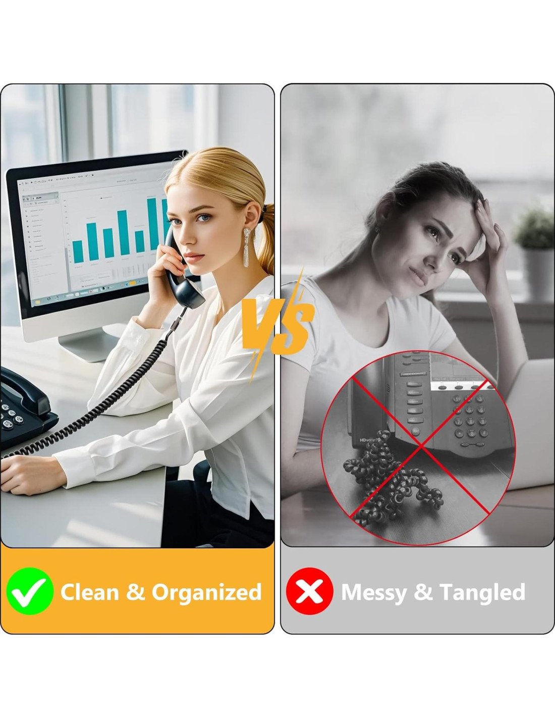 - Fácil de Usar: Deja de desenredar cables de teléfono retorcidos. Con un desenredador de teléfono fácil de instalar, los cables retorcidos son cosa del pasado. Simplemente coloca el desenredador entre el auricular del teléfono y el cable. El diseño superior utiliza un cable extendido para compatibilidad con auriculares que tienen conectores empotrados