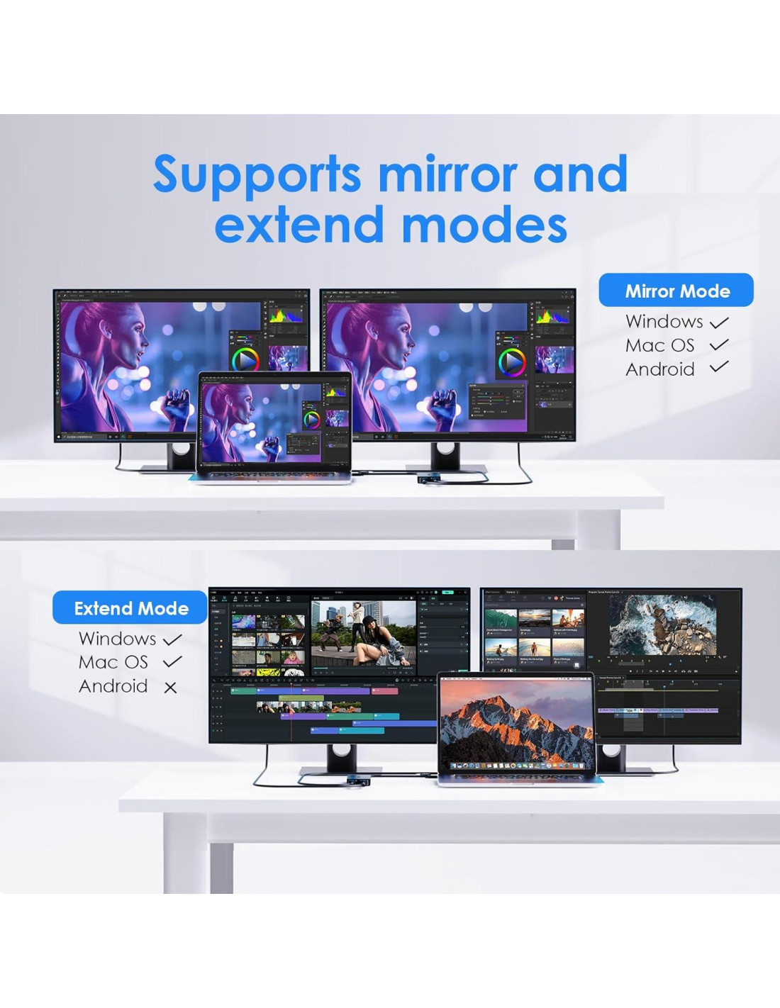 - [Flexibilidad Plug & Play] Este divisor HDMI de pantalla extendida para monitores duales funciona con Windows 7-11, macOS 10.14+, ChromeOS y Android. Se requiere controlador-No hay soporte para Linux/Unix/iPad/iOS