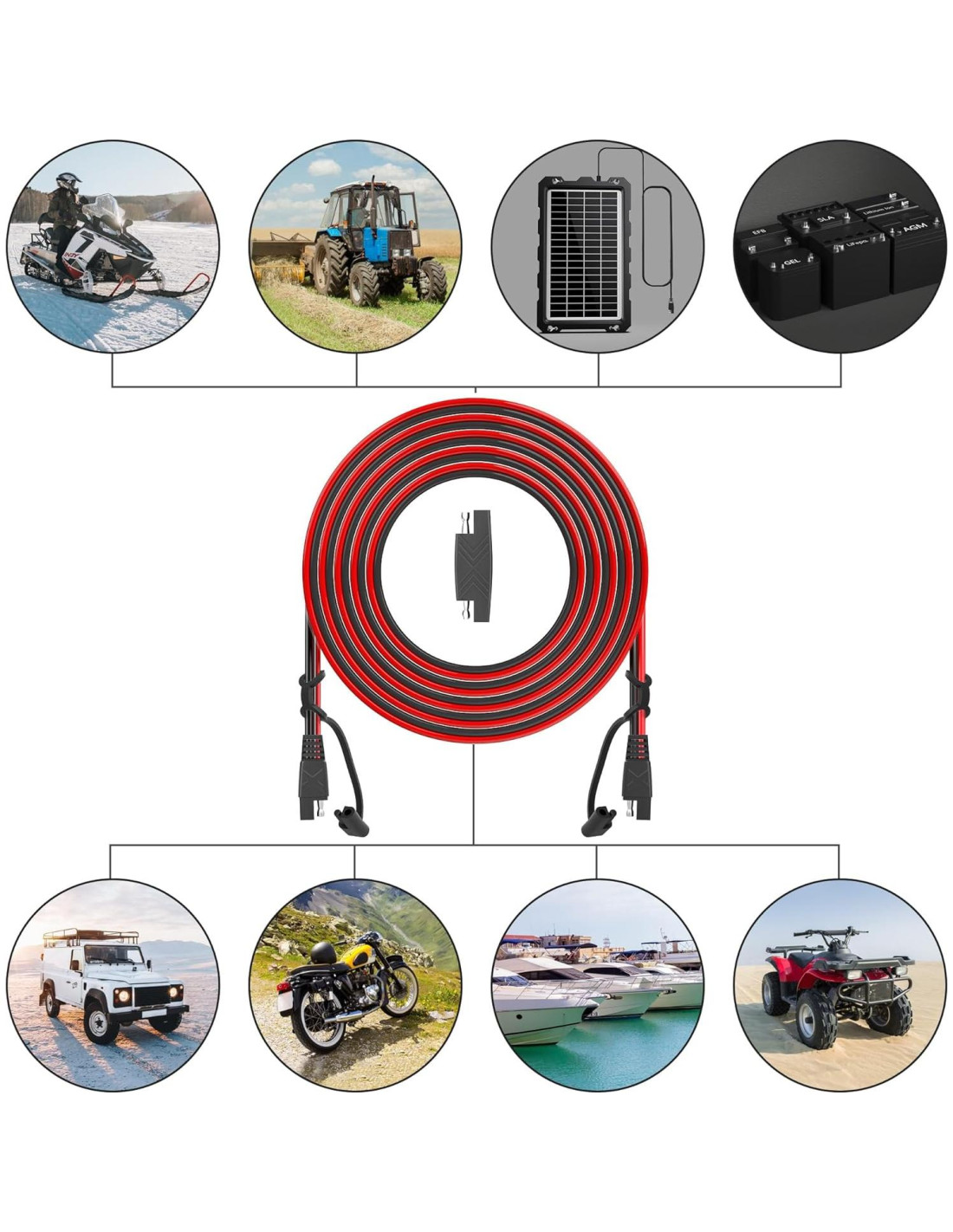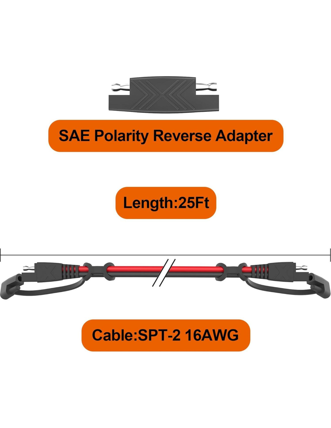 - Paquete Incluye: Cable de extensión SAE de 25FT y adaptador de inversión de polaridad SAE.
