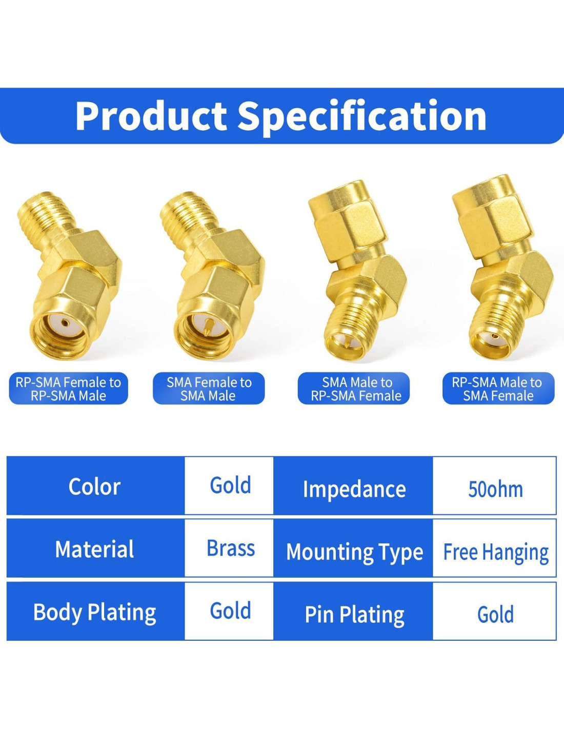 - Paquete: Kit de Adaptador SMA Macho/Hembra a RP-SMA Macho/Hembra de 45 Grados de Alta Calidad.