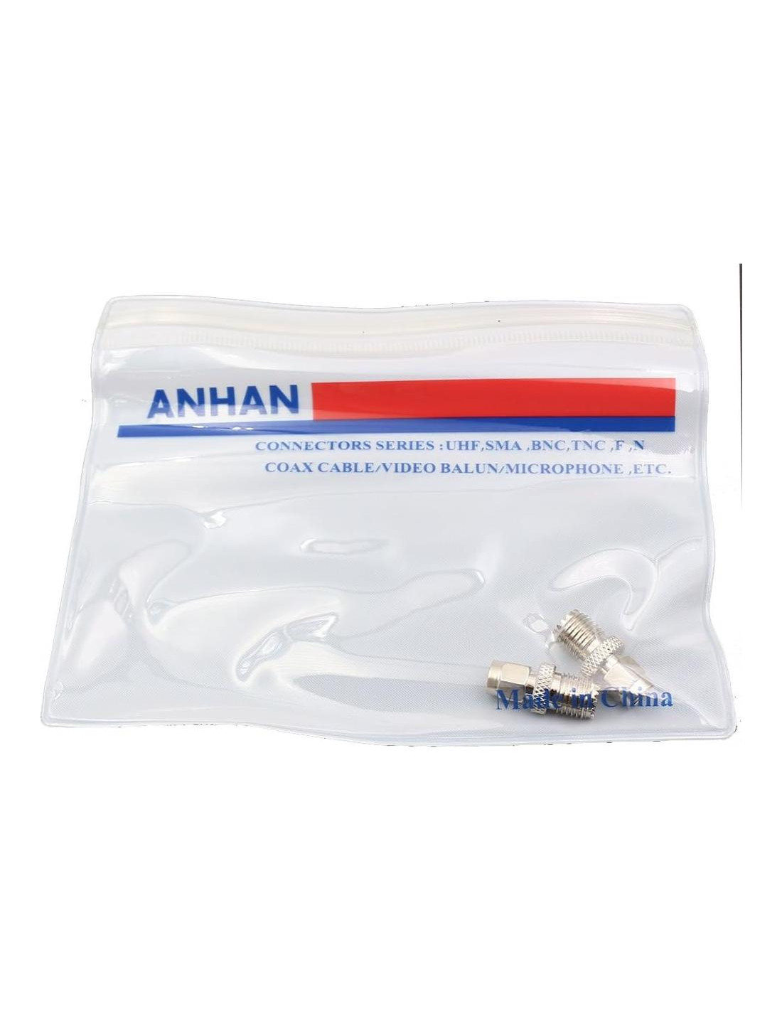 - Conectores: Mini UHF hembra y SMA macho, un conector es Mini UHF hembra (orificio interno) y el otro conector es SMA macho (pin interno).