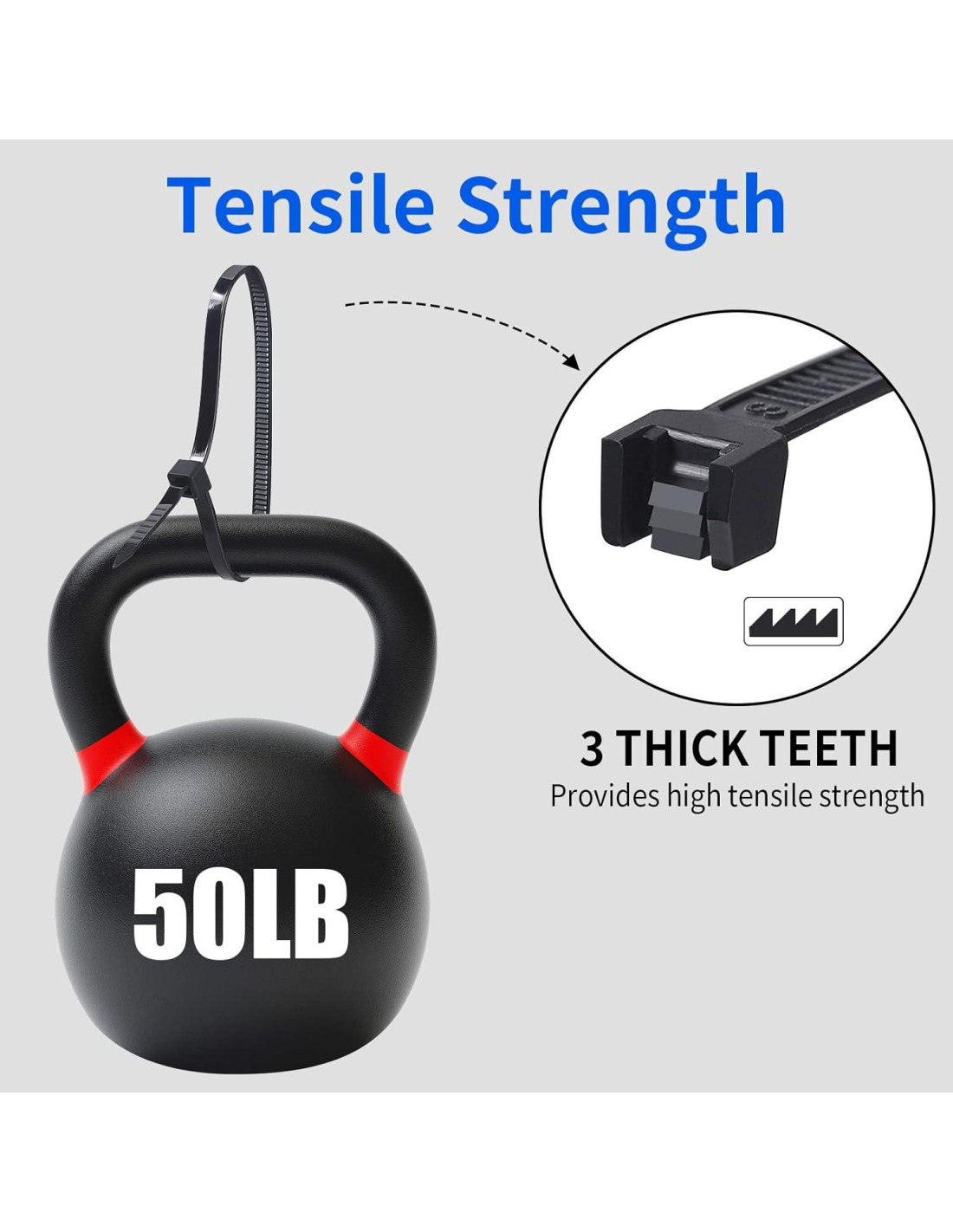 - Brida Negra de Alta Resistencia: La fuerza de estas bridas proviene de su ancho. Dado que nuestras bridas de alambre tienen un ancho de 0.48 cm, son más fuertes que las bridas del mismo tamaño y son útiles para más proyectos. Tiene una resistencia a la tracción de 22.68 kg.