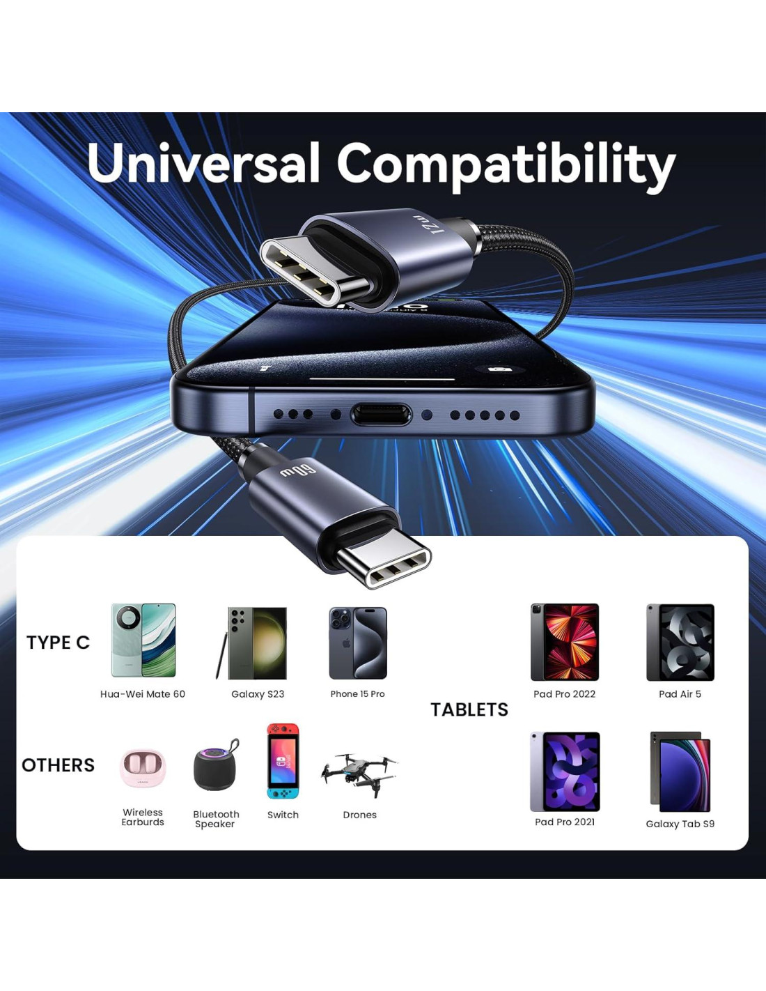 - Cable USB-C 2-en-1 Premium - Incluye cable de 4ft de alta resistencia con puntos de estrés reforzados, proporcionando carga confiable de dos dispositivos en una solución compacta (1x cable USB-C 2-en-1 de 72W incluido).