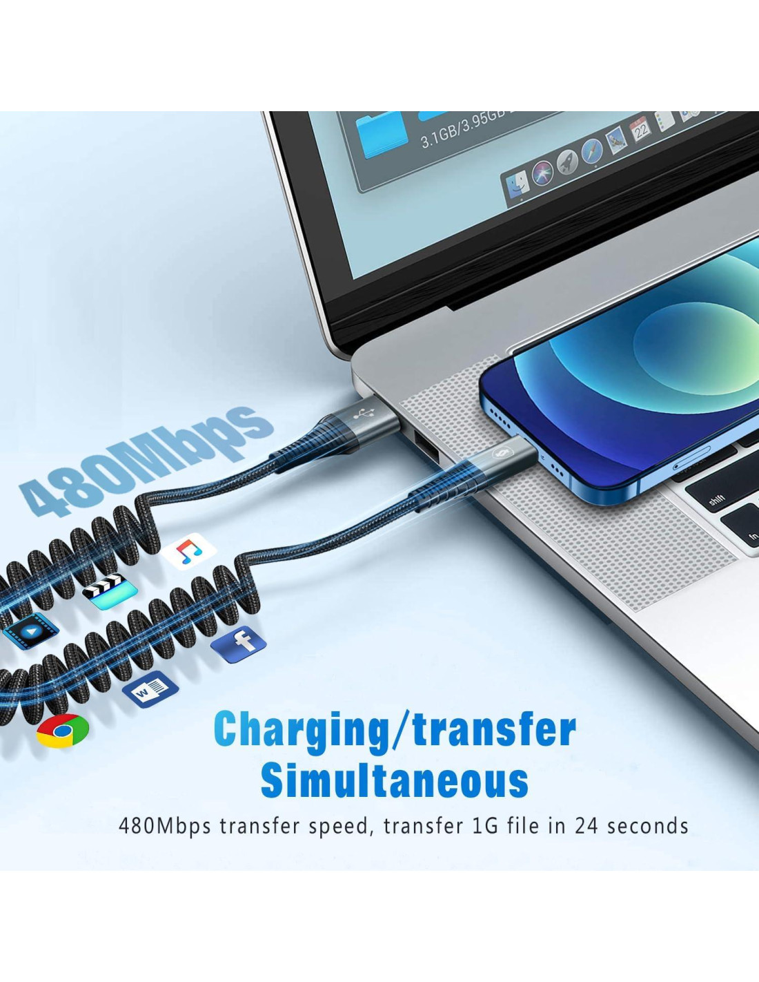 - [Cable de Relámpago Enrollado Hecho para Coche] Especialmente fabricado para el cable de relámpago en forma de disco para coche, diseñado en forma de resorte, retráctil en cualquier momento para ajustar, fácil de llevar y usar, no se enreda fácilmente, ahorra espacio en el coche, no causará desorden ni problemas.