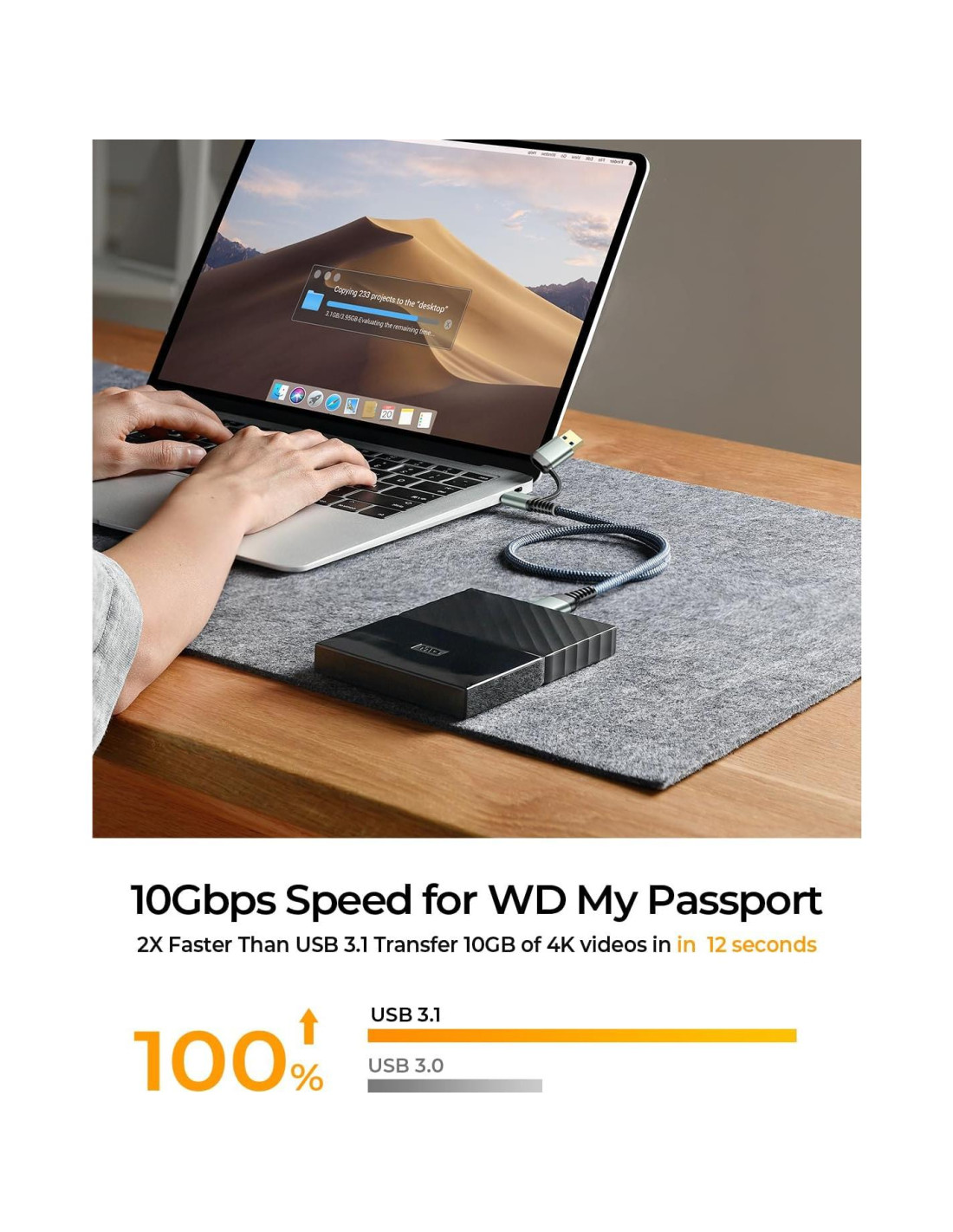 - Opciones Súper Resistentes y de Alto Valor Con más de 40,000 pruebas de flexión, el cable trenzado de nylon flexible y resistente tiene una vida útil más larga. El diseño anti-rotura SR más largo mejora la durabilidad del cable externo de disco duro micro USB. También está hecho de un caso de aluminio, que tiene mejor conductividad térmica y es más seguro que el plástico.