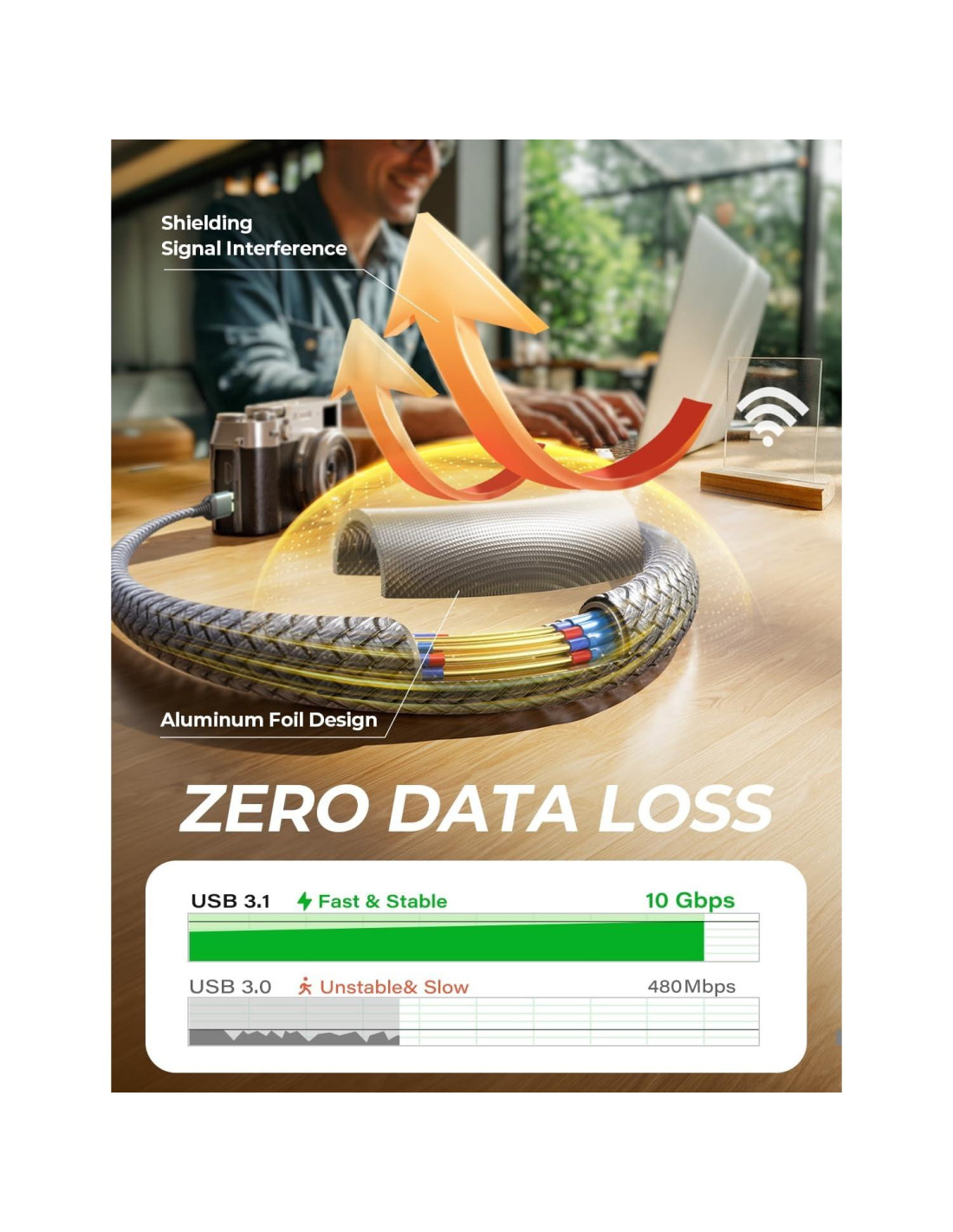 - Secreto de la Máxima Estabilidad Este cable externo USB C a Micro B ha sido probado por más de 600+ instituciones profesionales. El cable está equipado con un cable de tierra interno y está recubierto con papel de plata, y la parte exterior utiliza trenzado FM-PE. Conectores únicos chapados en oro también hacen que la transmisión de datos sea más estable. Evita fallos de transmisión debido a inestabilidad durante la transmisión rápida.