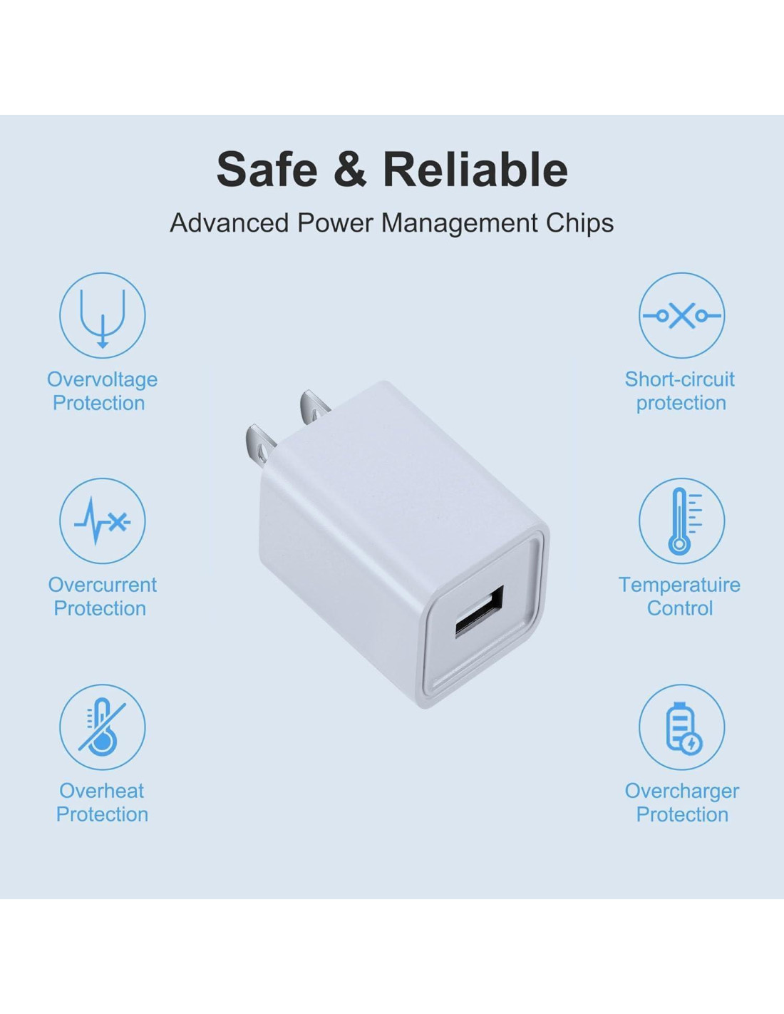- Carcasa exterior resistente al fuego y salvaguardas integradas para proteger contra sobrecalentamiento, sobrecarga, sobrecarga, cortocircuito, brindan la máxima protección para usted y sus dispositivos.