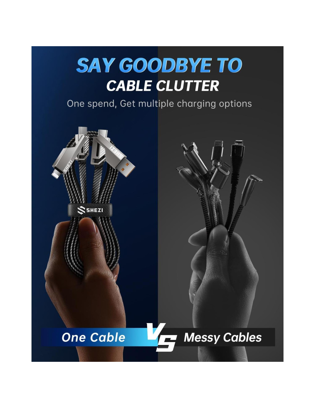 - Carga Rápida de 60W: Nuestro cable de carga múltiple está equipado con una potencia de carga de 60W, lo que le permite obtener la energía necesaria para un día en 35 minutos. Nota: Para lograr carga rápida de 60W, asegúrese de estar equipado con un adaptador de carga de más de 60W