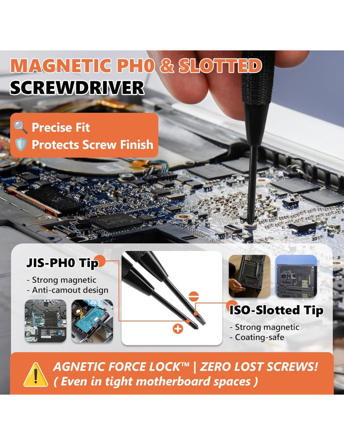 - DESTORNILLADORES DUALES MAGNÉTICOS: Destornilladores Phillips y ranurados de 3mm con imanes N52 - ¡sostienen tornillos M2*3+2.5 verticalmente! Los mangos hexagonales generan un 35% más de torque en comparación con empuñaduras de plástico. El destornillador de 3mm se adapta a todos los tornillos, no es necesario realizar compras adicionales.