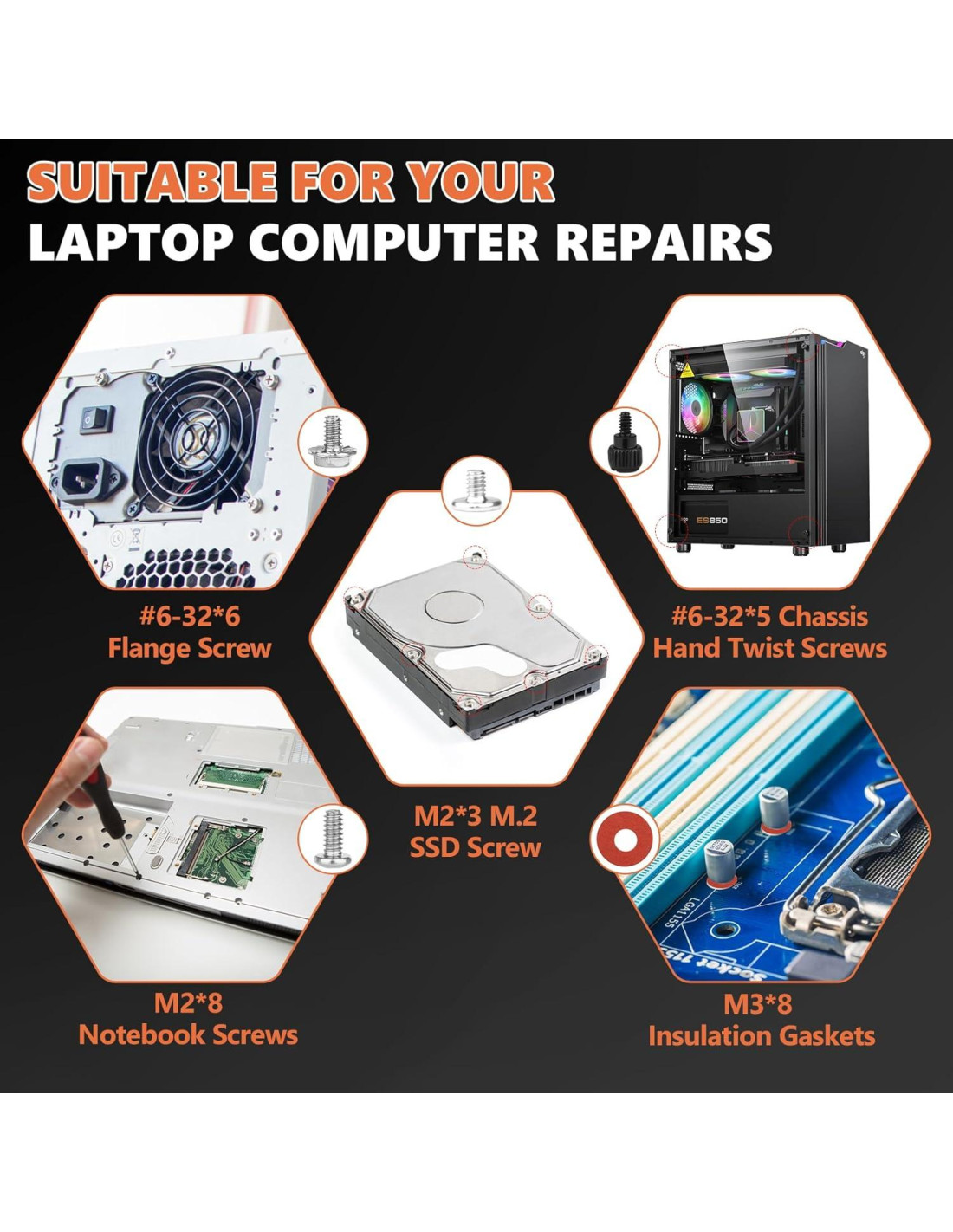 - CAJA PRO ETIQUETADA: Compartimentos para todos los 23 tipos de tornillos. Encuentra tornillos HDD #6-32 o tornillos de ventilador M5*10 en 3 segundos (Tamaño: 19*10*1.7cm - cabe en la bolsa de la laptop).