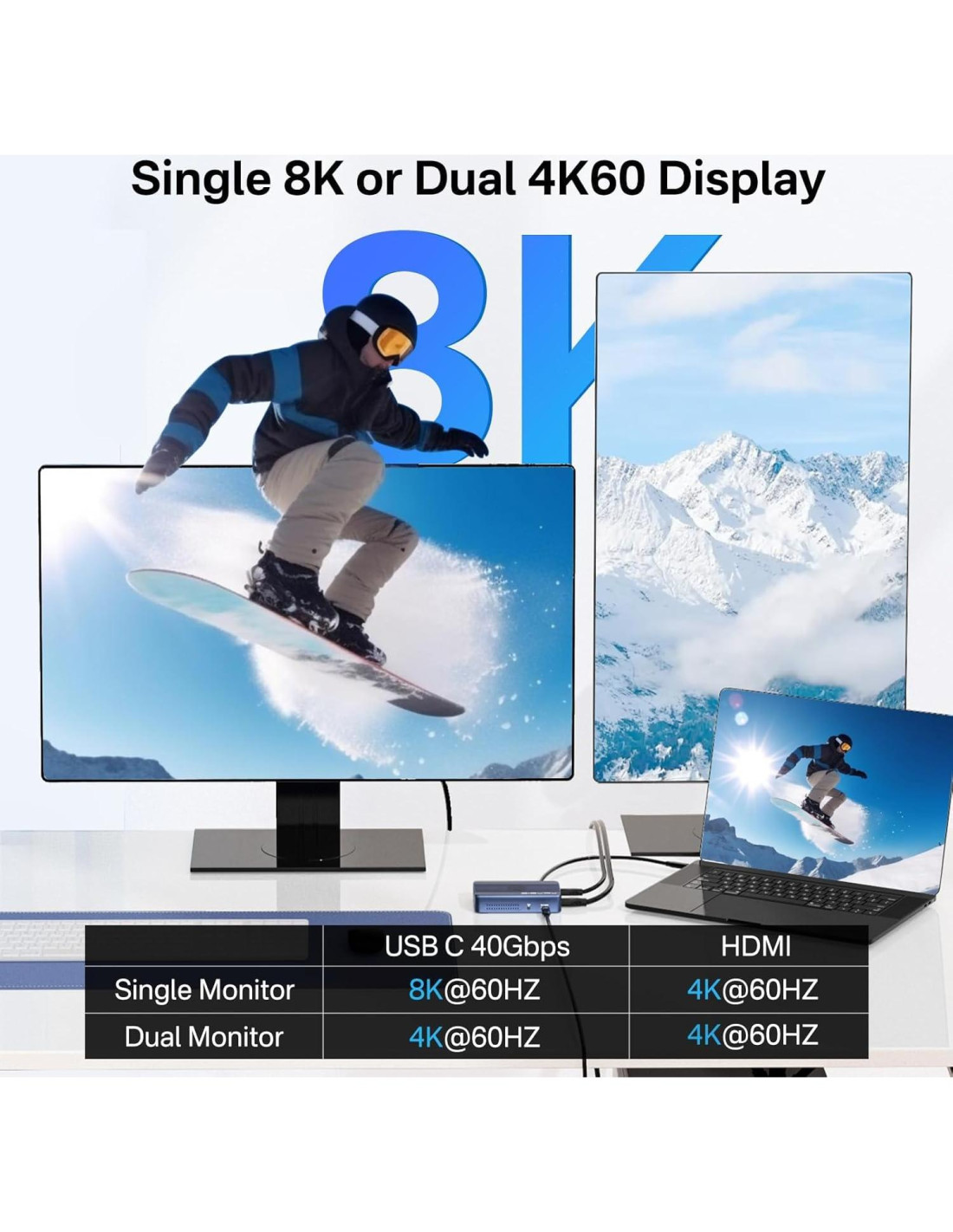 - [Dock ACASIS 6-en-1 con 40gbps y caja NVMe de doble bahía] TBU405 Pro Max cuenta con 1*HDMI, 1*USB-A 3.1, 2*USB-C 40Gbps, 1*PD 100W. Ya sea para expandir pantallas, interfaces de computadora o memoria, este producto es perfecto para todas tus actividades creativas: guardar, crear y editar. ¡INCOMPATIBLE CON DISPOSITIVOS HOST NO 40Gbps!