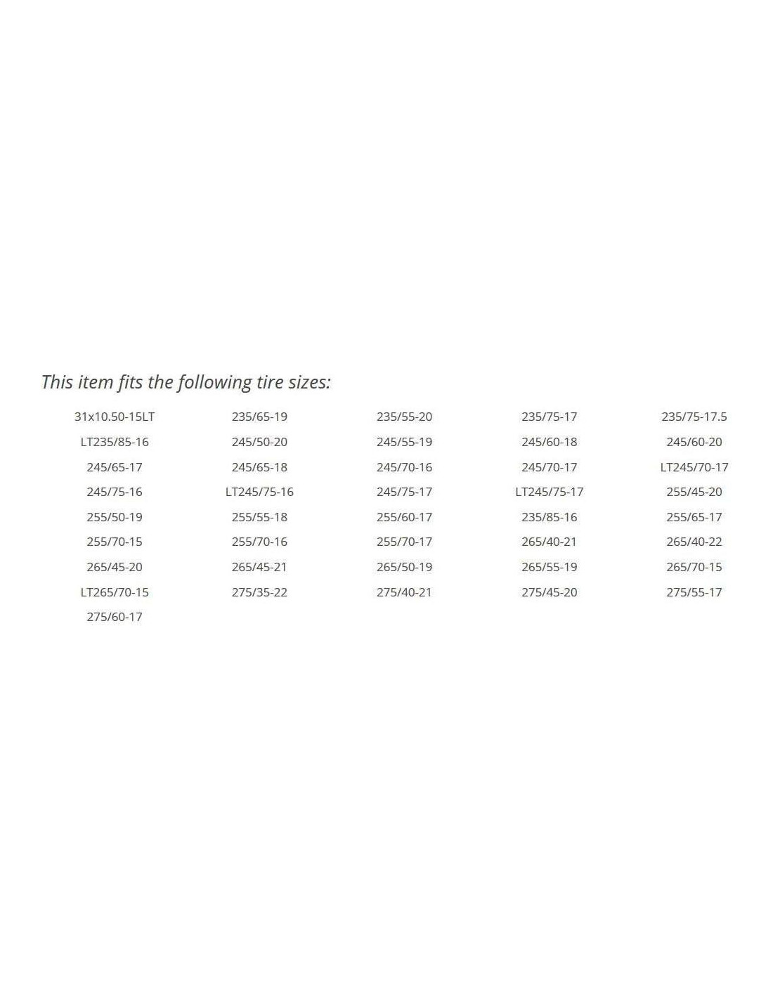 - Producto 1: No exceda 30 mph (48 km/h) con estas cadenas puestas