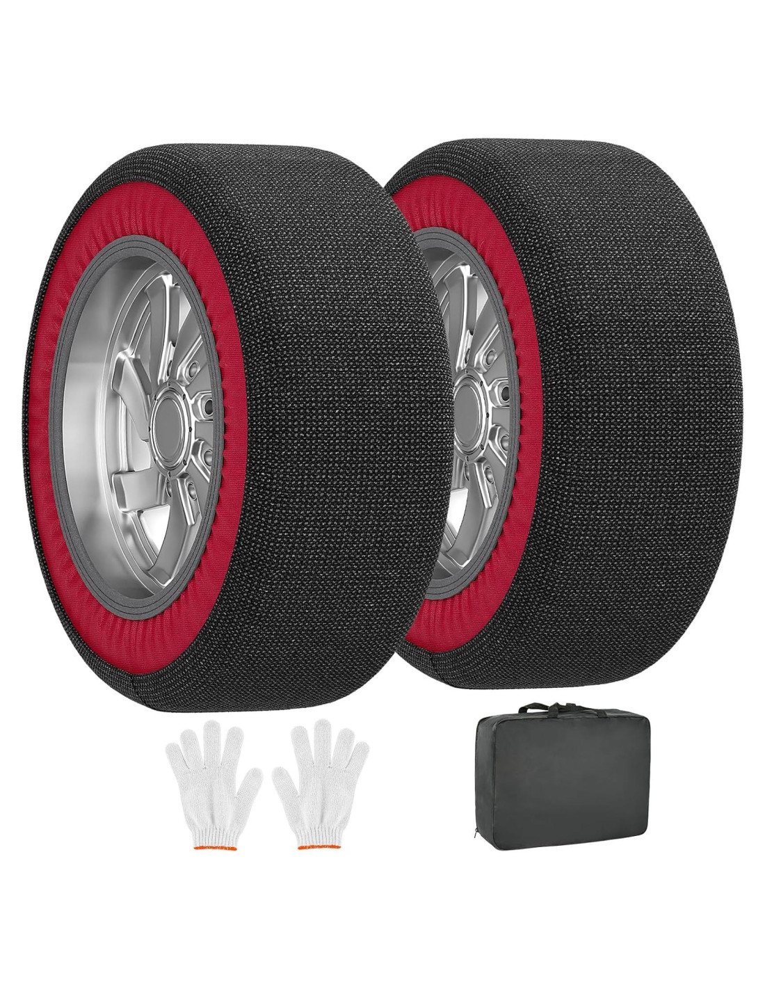 - Tracción Mejorada: Los Calcetines de Nieve para Neumáticos proporcionan una tracción excepcional en carreteras cubiertas de nieve, asegurando una conducción segura y confiada en condiciones invernales. Diga adiós a las carreteras resbaladizas y disfrute de un mejor manejo y control