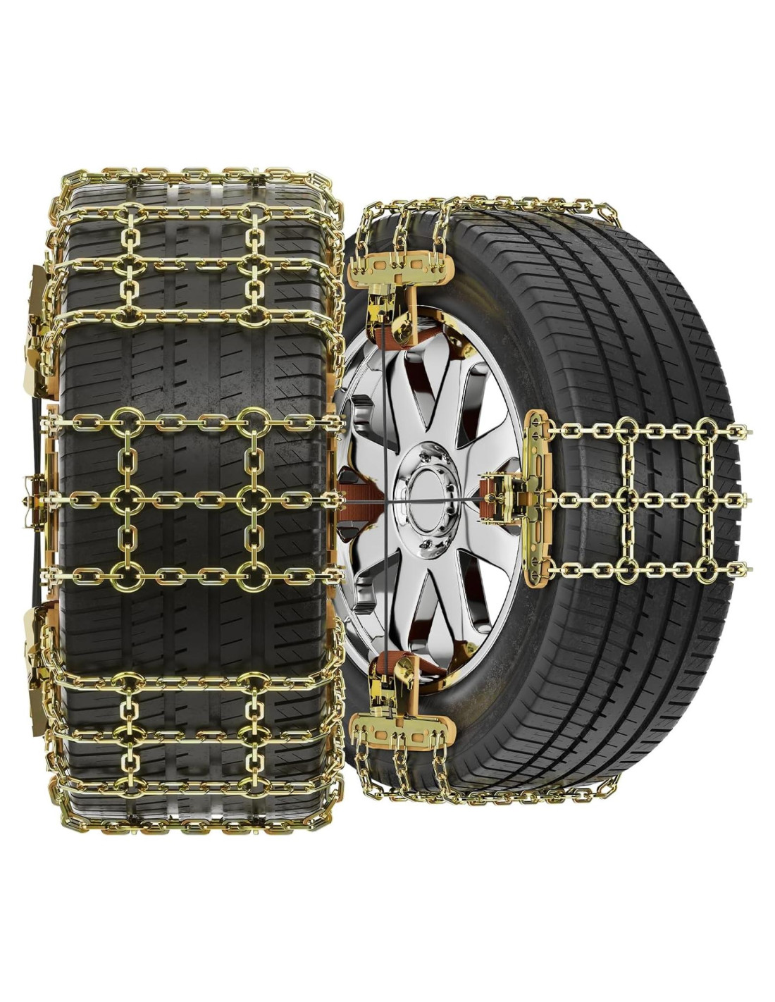 - Diseño mejorado: Cadenas engrosadas con un diseño cruzado estable; múltiples cadenas para mejorar la capacidad de romper el hielo; placa de guardia lateral protege el cubo del neumático; alta dureza, elasticidad, resistencia a bajas temperaturas y corrosión
