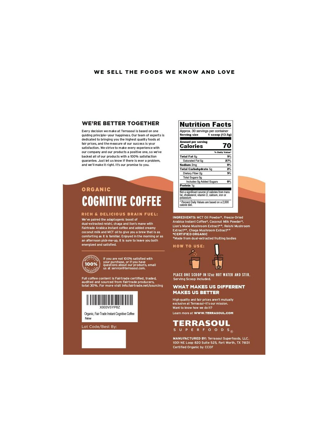 - Café de Hongo Cognitivo Terrasoul Superfoods - 404.3 g - Bolsa Reutilizable de 30 Porciones con Cucharón para Porciones