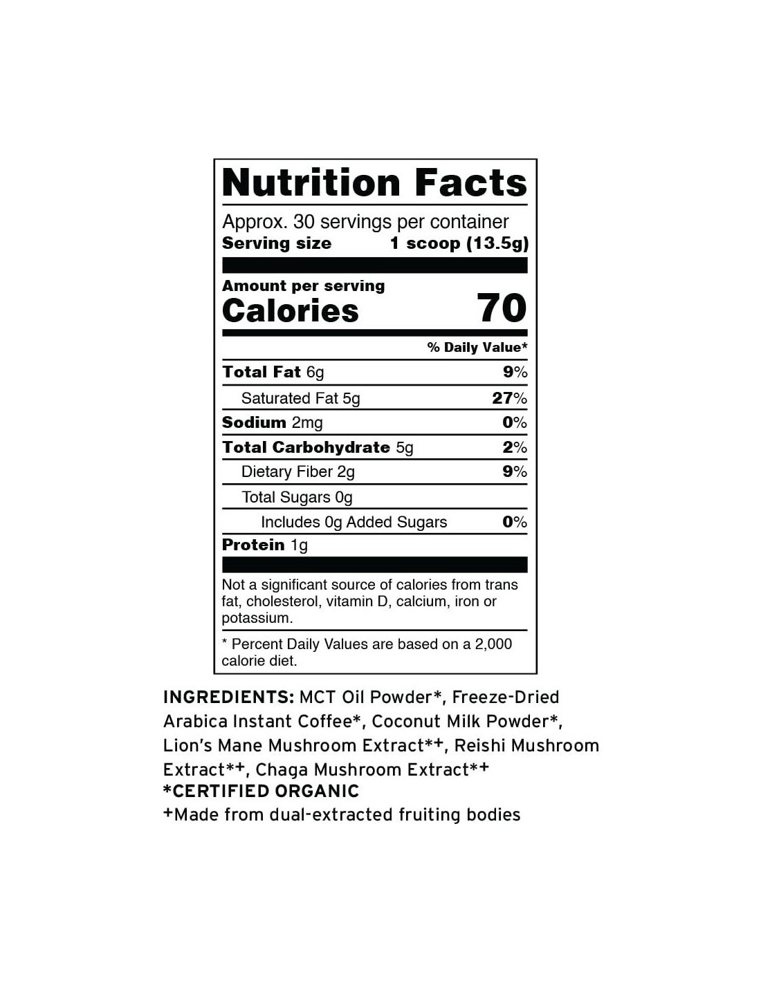 - Obtén los beneficios de los hongos mientras disfrutas de tu café de la mañana. Nuestro Café Cognitivo sabe a café con aceite MCT y crema de coco para energía sostenida.