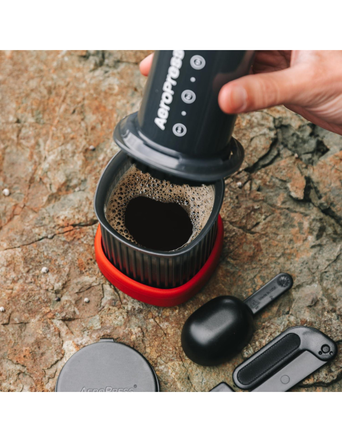 - Componentes incluidos: Cámara AeroPress Go, émbolo AeroPress Go, estuche que también sirve como taza, tapa roja, 50 micro-filtros AeroPress, cuchara, mezclador