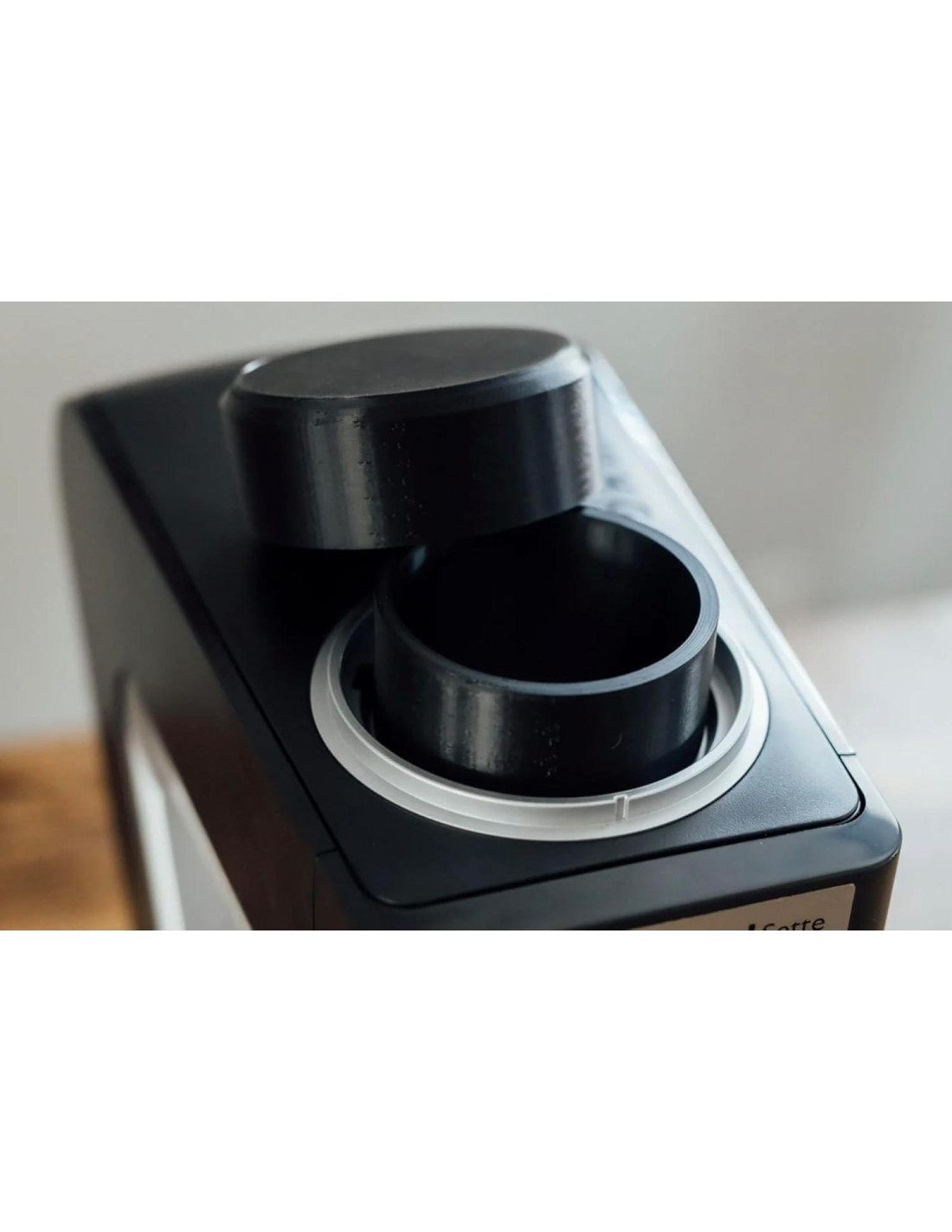 - El contenedor minimalista sostiene aproximadamente 21 gramos de granos para moler cómodamente una sola dosis de espresso.