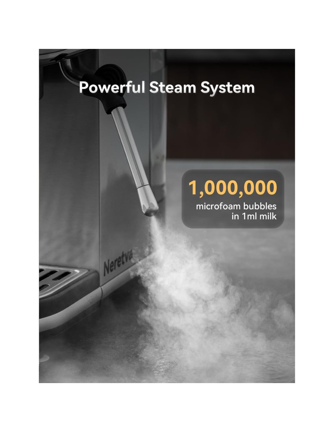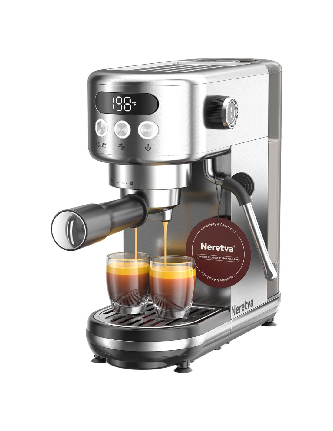 - PRESIÓN PROFESIONAL DE 20 BAR - ¡Adopta la elaboración de estilo barista con la máquina de espresso Neretva! Con un sistema de presión de 20 bares y una robusta caldera de 1350W, la máquina de espresso extrae café premium para lattes, capuchinos y más.