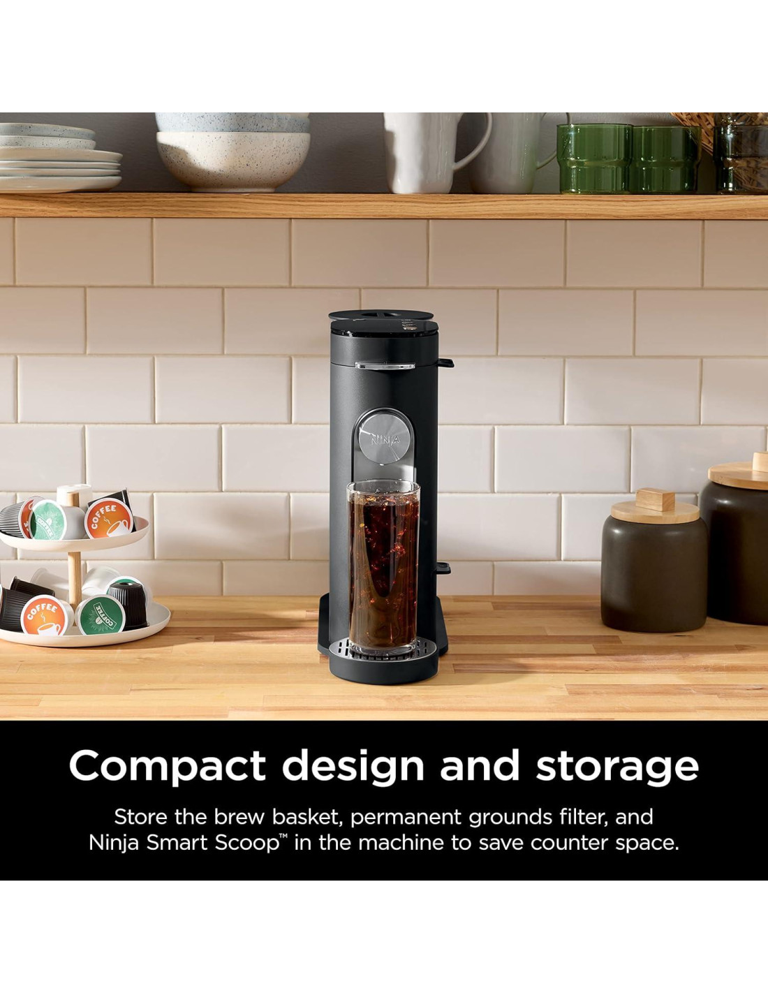 - Componentes incluidos: Filtro, Cucharón Ninja, Canasta de Cerveza Removible, cafetera, adaptador de cápsulas Ninja