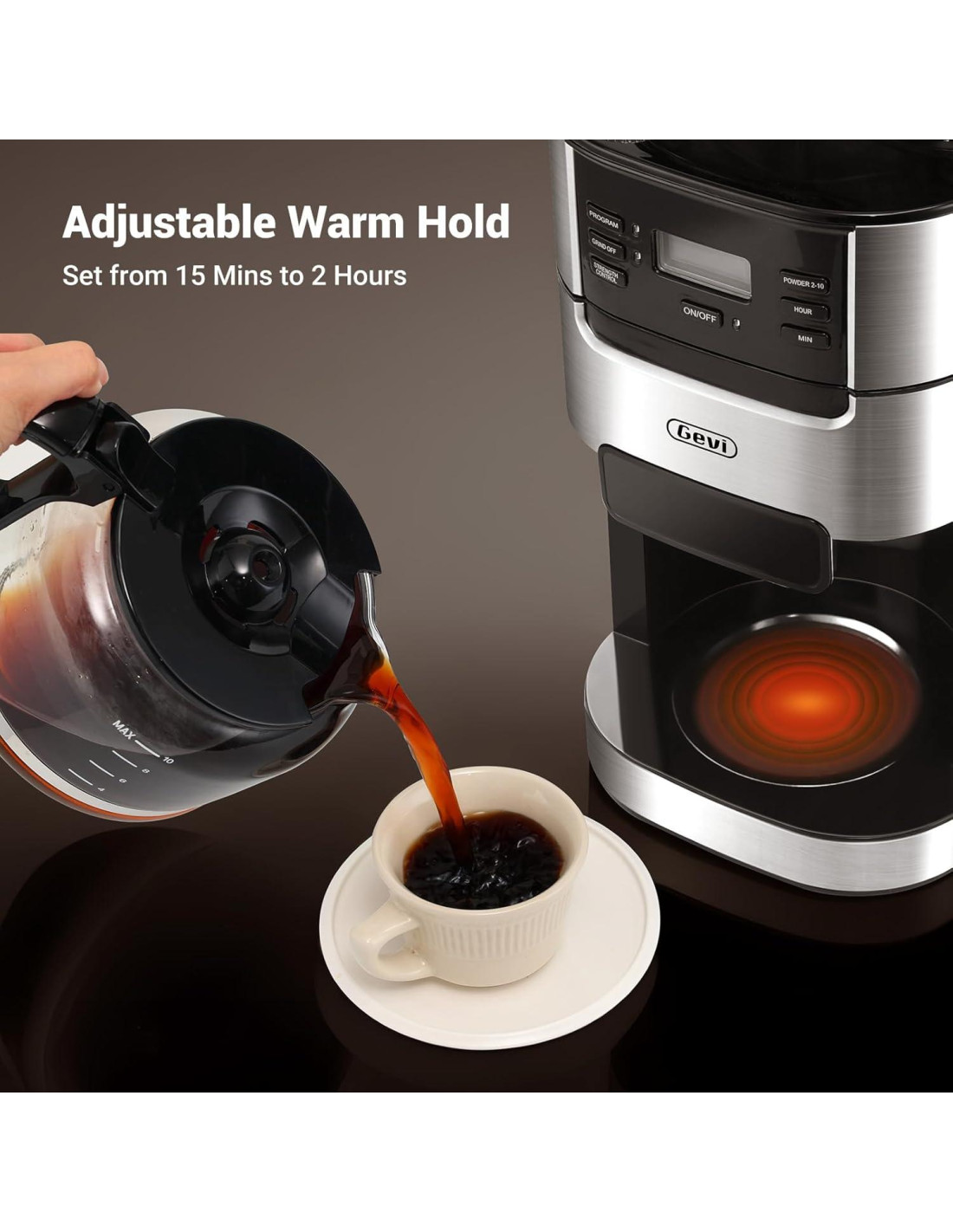- [Café de 2 a 10 Tazas] Prepara de 2 a 10 tazas sin esfuerzo utilizando el botón programable "TASA 2-10". El molinillo integrado asegura un equilibrio perfecto entre café y agua, ya sea que estés haciendo una sola taza o una jarra completa.