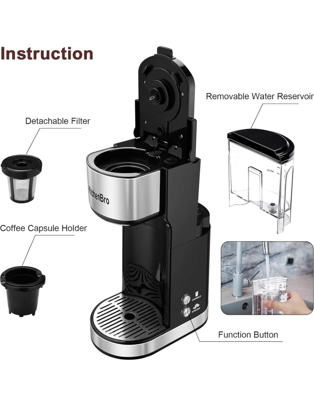 - Cafetera de una sola porción de preparación rápida: Con esta cafetera mini de bajo consumo, ¡puedes obtener café fresco en 25 segundos desde el inicio hasta la preparación! Dependiendo de tu preferencia, puedes preparar cápsulas de café K Cup o hacer una taza de café molido o una taza de té, ¡esta combinación de cafetera K Cup y cafetera puede ayudarte a hacerlo!