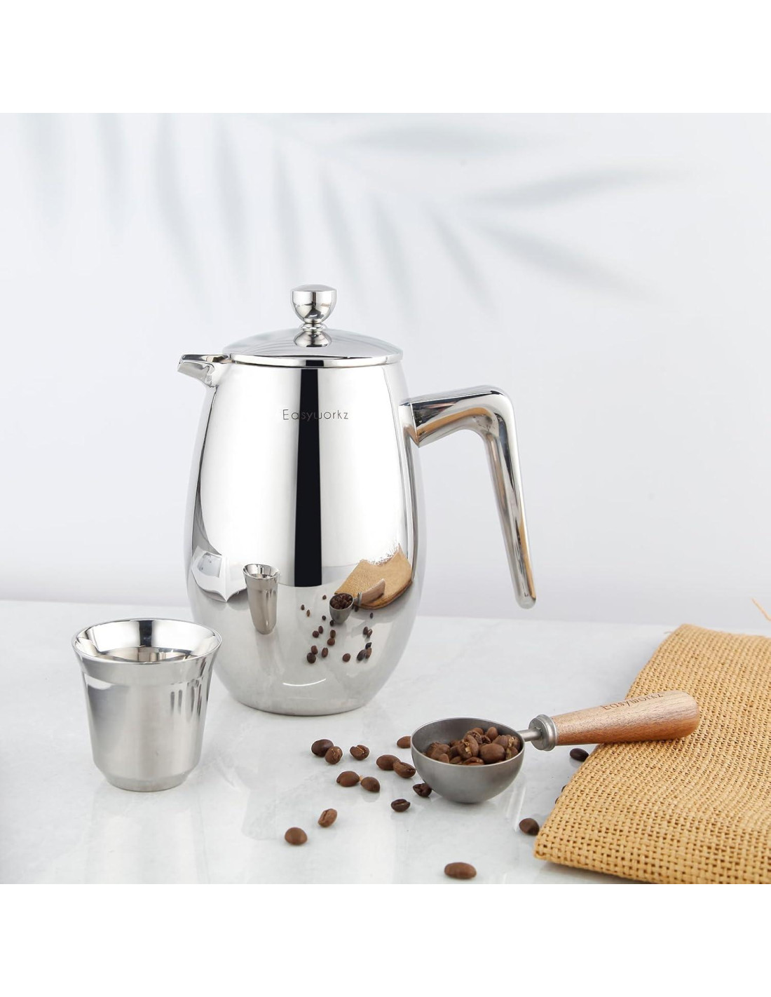 - [Olla de Café Francesa con Innovador Sistema de Filtración de 4 Niveles] Utiliza la última tecnología de fabricación y combina estética para diseñar esta elegante olla de café francesa, tetera. Con el filtro de malla de acero inoxidable micro extra fino de 4 niveles, puedes preparar tu café o té con el filtro, para obtener un mejor sabor sin que los posos de café se mezclen en tu café.