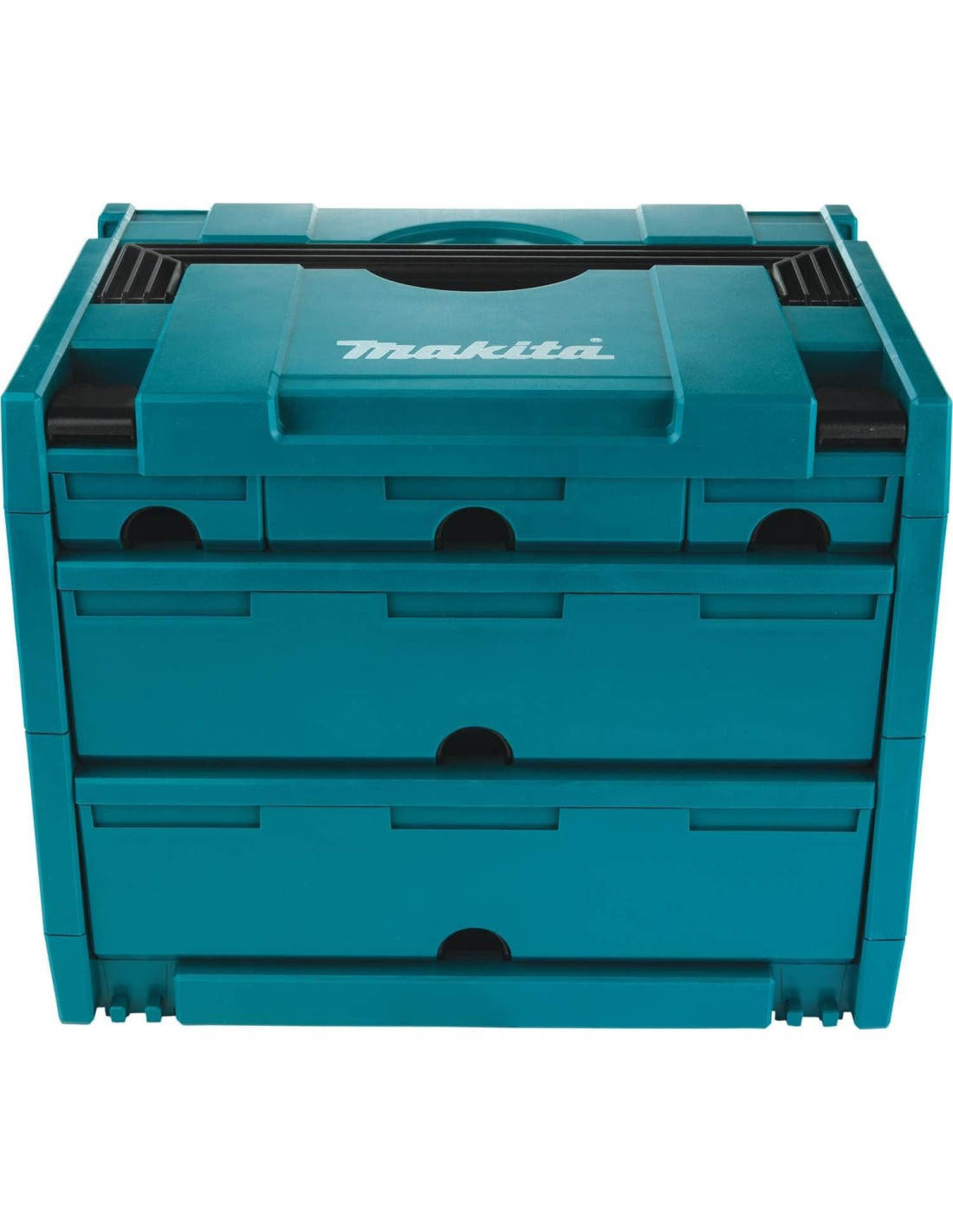 La Caja Interconectada de 5 Cajones MAKPAC, 12-1/2" x 15-1/2" x 11-5/8" (P84349), permite la personalización y almacenamiento de herramientas, piezas pequeñas, accesorios y más. Cuenta con un mecanismo de bloqueo por presión para mantener los cajones asegurados durante el transporte. El innovador diseño de la caja apilable facilita la organización, transporte y protección de herramientas. Los pestillos interconectados aseguran la tapa y enlazan múltiples cajas, y tiene un mango de transporte de perfil bajo y redondeado para mayor comodidad del usuario. Es parte del Sistema de Almacenamiento Interconectado Makita MAKPAC.