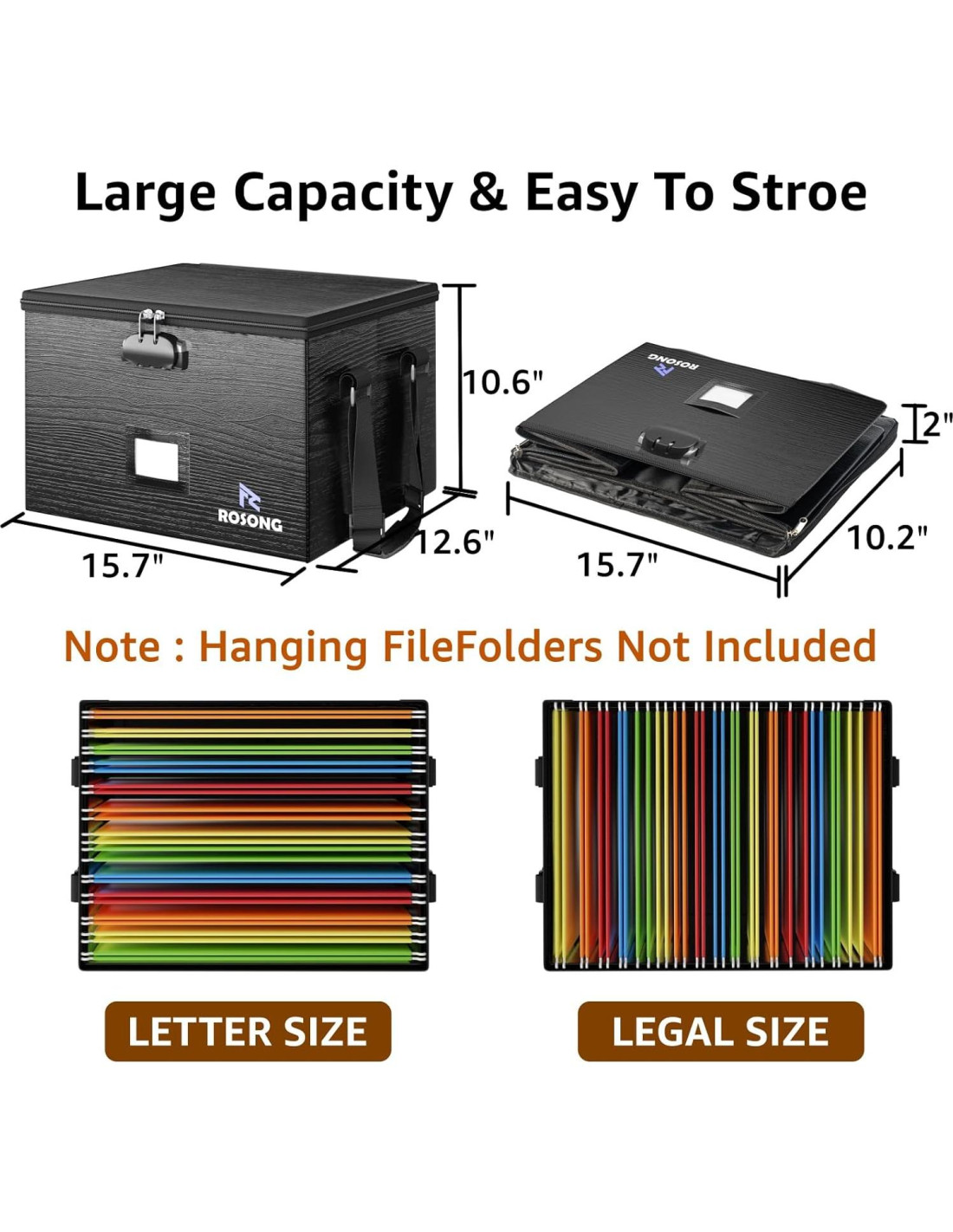 - Capacidad Espaciosa y Organización: Con dimensiones de 39.4 cm x 32.0 cm x 26.9 cm, este organizador de documentos acomoda archivos de tamaño carta y legal. Los bolsillos de malla interiores y las pestañas en la tapa/lados ofrecen organización adicional para documentos importantes, objetos de valor, medios y más.