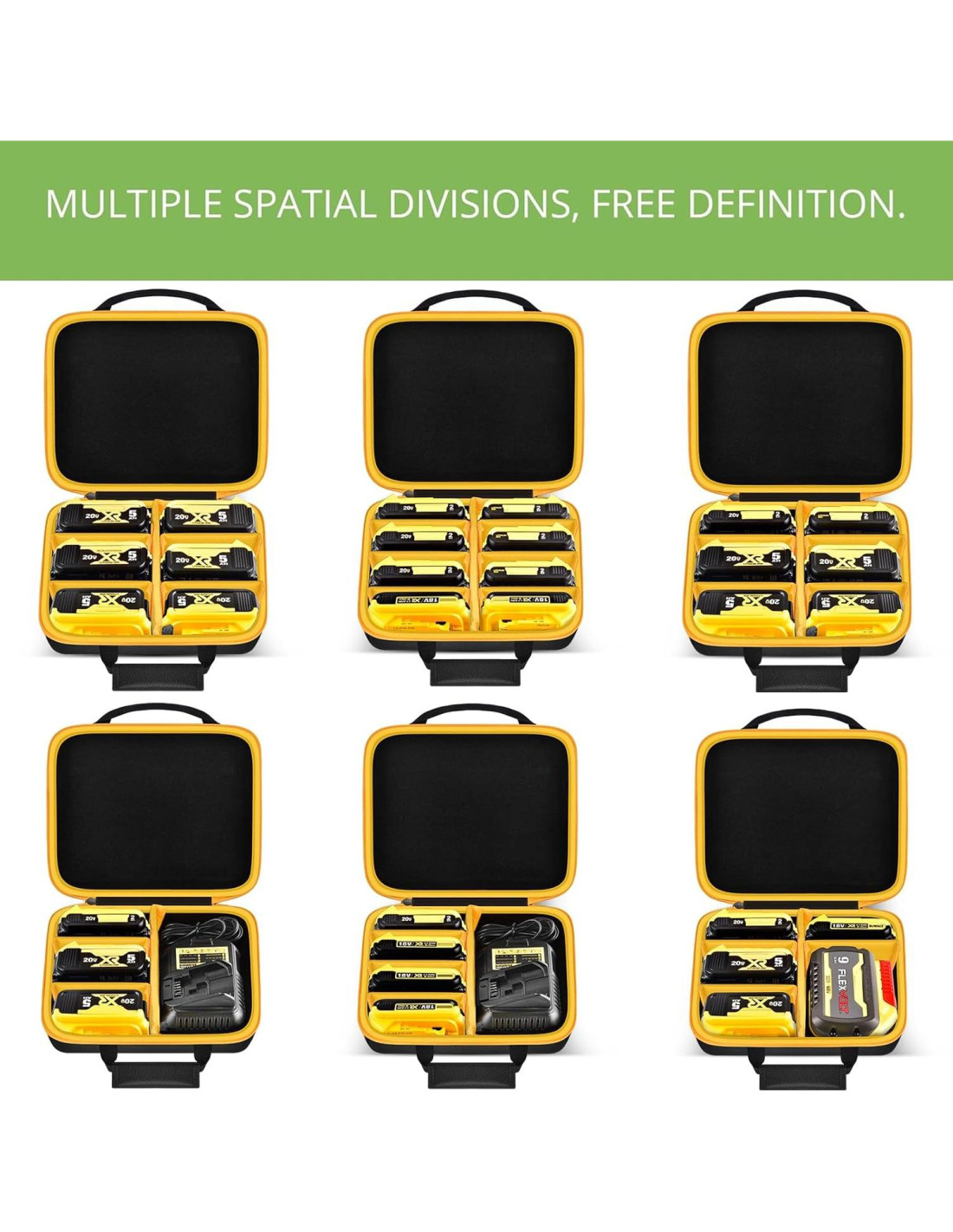 - SATISFACE LAS NECESIDADES DE DIFERENTES TAMAÑOS PARA CARGA DE BATERÍA DE DEWALT - Con 7 divisores desmontables para satisfacer las necesidades de diferentes tamaños de batería Ah, las áreas de almacenamiento para las baterías DEWALT están separadas por un divisor de baffle removible y ajustable, evitando efectivamente rasguños y colisiones.