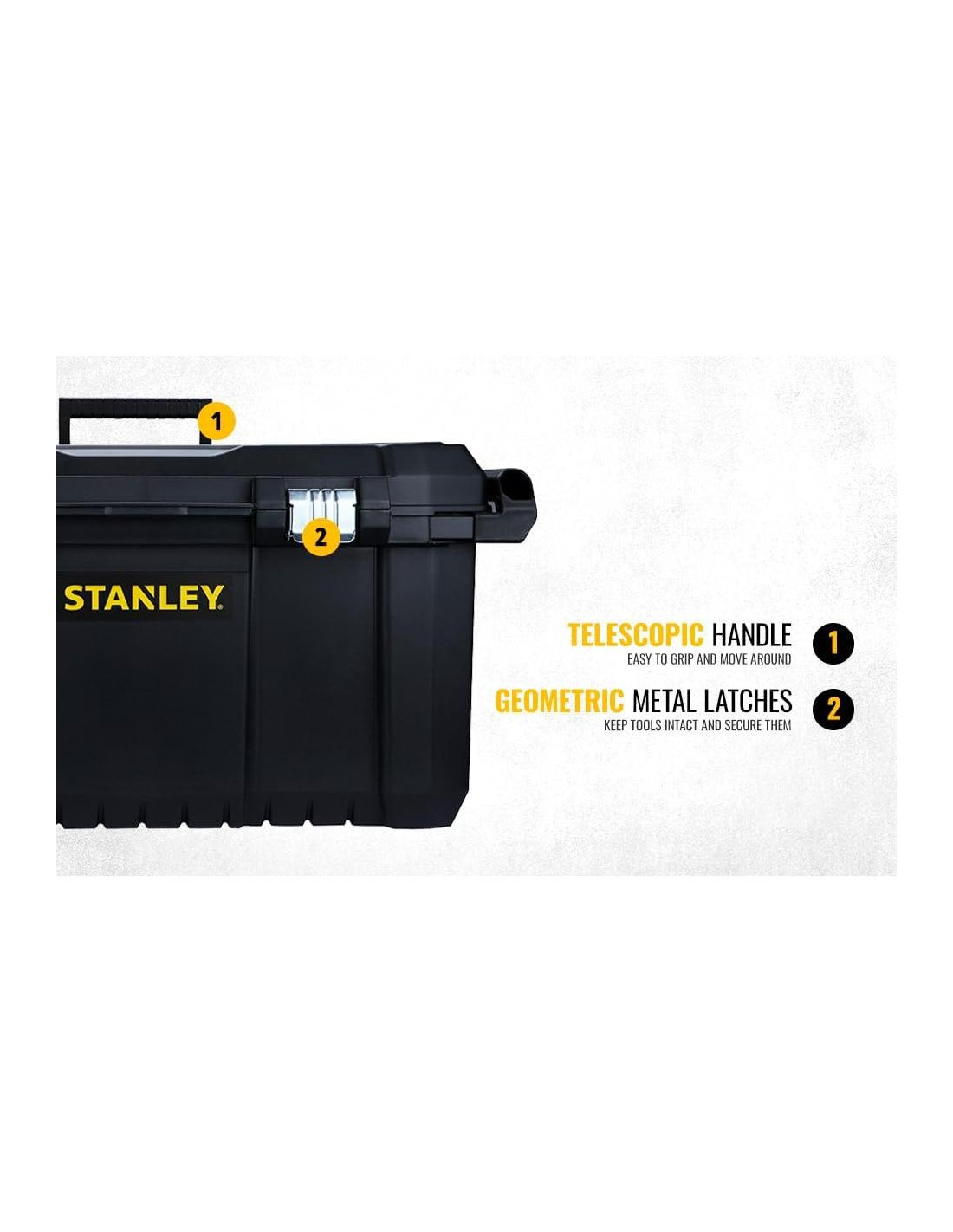 El Cofre Rodante Esencial de STANLEY con ruedas y mango telescópico es una solución de almacenamiento móvil perfecta, construida con plástico resistente para mayor durabilidad. Los pestillos metálicos de alta resistencia permiten una apertura y cierre suaves de la tapa. El largo mango telescópico y las grandes ruedas recubiertas de 7'' (17.78 cm) hacen que esta caja sea fácil de maniobrar durante el transporte. Un innovador canal en V ha sido detallado en la tapa, que se puede usar como plataforma para cortar madera y tuberías. La gran capacidad de almacenamiento de 50L (50 litros) de la caja es ideal para almacenar herramientas eléctricas de tamaño grande a mediano, una bandeja portátil proporciona flexibilidad adicional a sus necesidades de almacenamiento. Los organizadores superiores permiten el almacenamiento de pequeñas piezas como tornillos, tacos, pernos y tuercas.