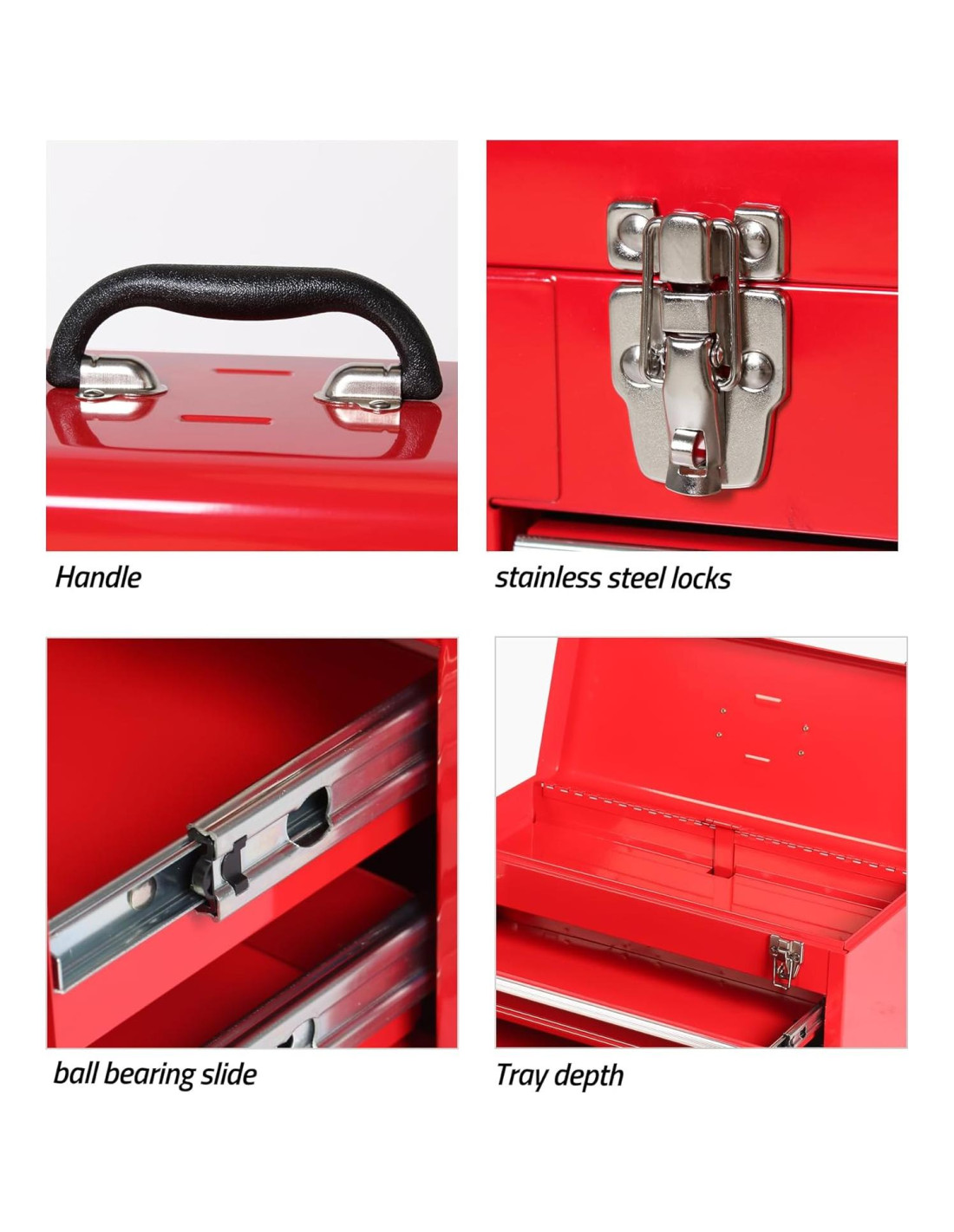 - Caja de herramientas portátil de 4 cajones con un cómodo mango superior y bisagra de piano de longitud completa