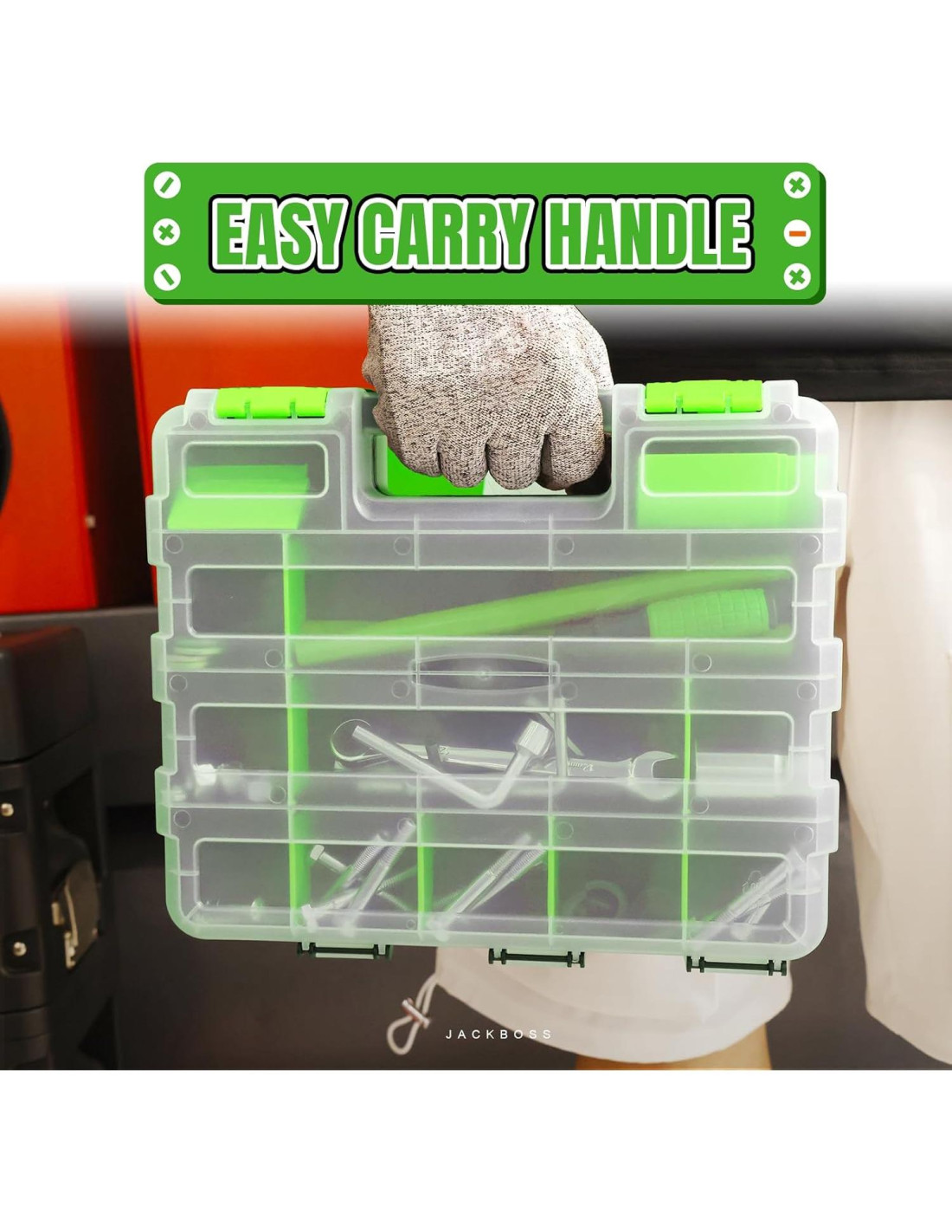 - Doble cara: La caja de herramientas con un diseño único de doble cara desmontable ofrece un espacio de almacenamiento sobredimensionado, asegurando suficiente espacio para almacenar.