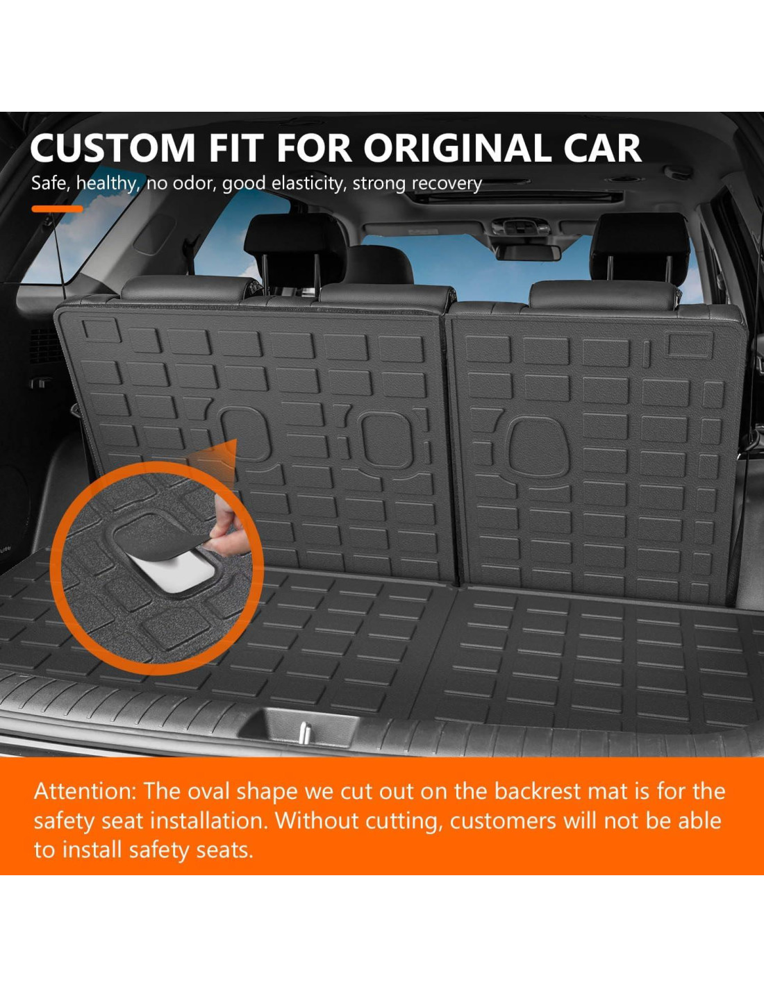 - Instalación simple: los forros de carga compatibles con Hyundai Palisade son fáciles de instalar y no dañarán el asiento original. Simplemente coloque el mat de maletero inferior en el lugar correcto. Y no afectarán el uso del automóvil. La parte posterior de nuestro mat de respaldo tiene Velcro para que pueda pegar y fijar fácilmente.