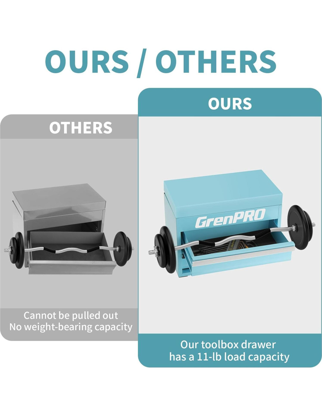 - Cajones de Extensión Completa 100% con Deslizamiento Suave ¡Diga adiós a los cajones a medio abrir frustrantes! Nuestros deslizadores de metal reforzados aseguran una extensión 100% suave como la mantequilla, permitiéndole acceder sin esfuerzo a cada rincón. Cada cajón soporta 5 kg sin hundirse, superando a las cajas de herramientas estándar