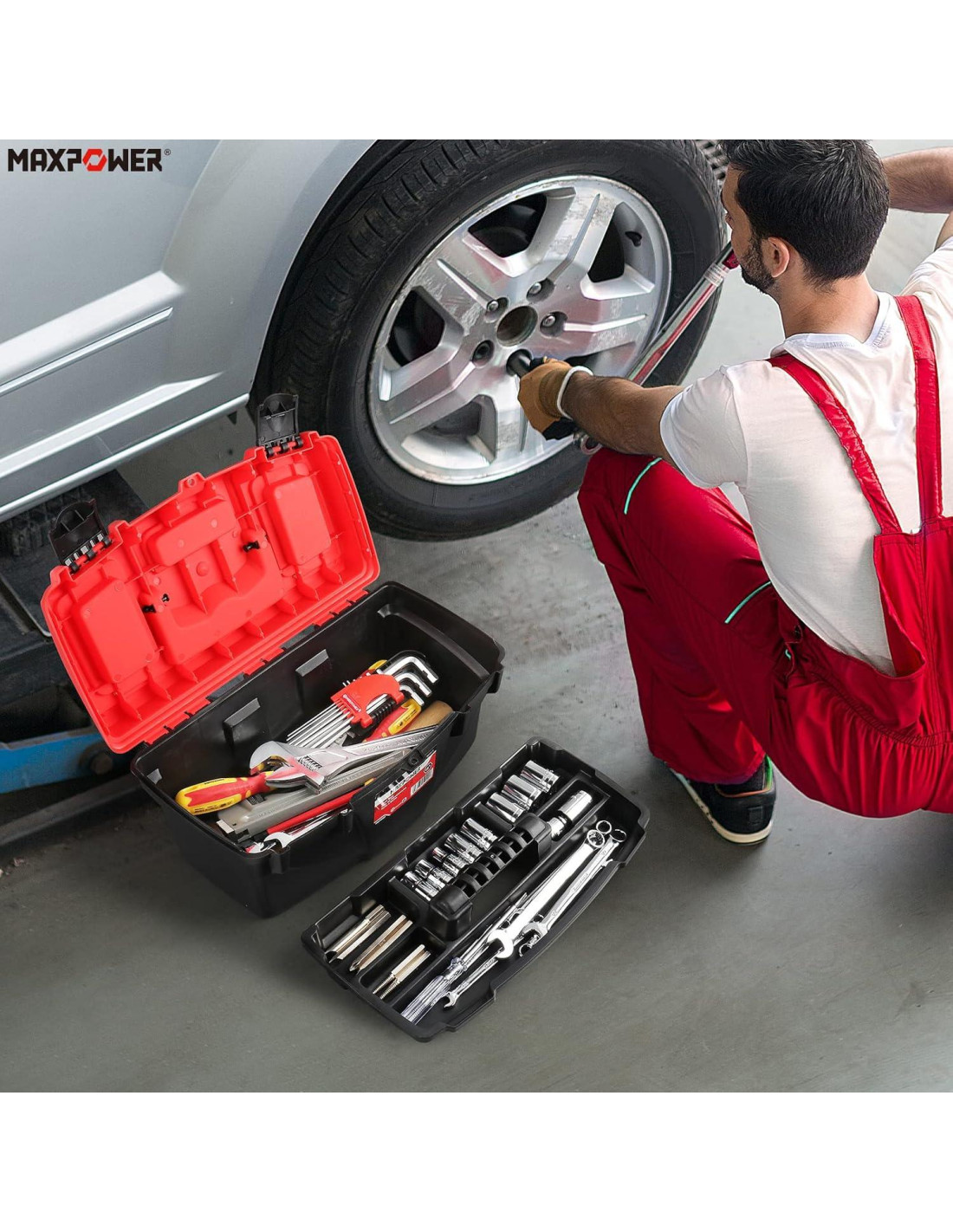 - Bandeja de herramientas extraíble: La bandeja de utilidad interior extraíble permite almacenar llaves, sockets, destornilladores, etc. Nuestras cajas de herramientas portátiles con compartimentos permiten llevar todos los accesorios de la caja de herramientas que necesite