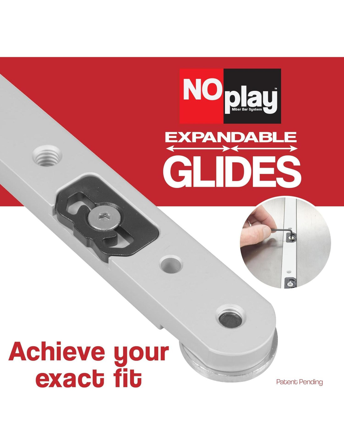- DESLIZADORES EXPANDIBLES - Los Deslizadores Expandibles únicos (Patente Pendiente) están diseñados para expandirse o contraerse a medida que aprietas o aflojas el tornillo central. Girar en sentido horario expande el Deslizador Expandible mientras que girar en sentido antihorario contrae/trae el Guía Expandible de vuelta hacia la barra de inglete.
