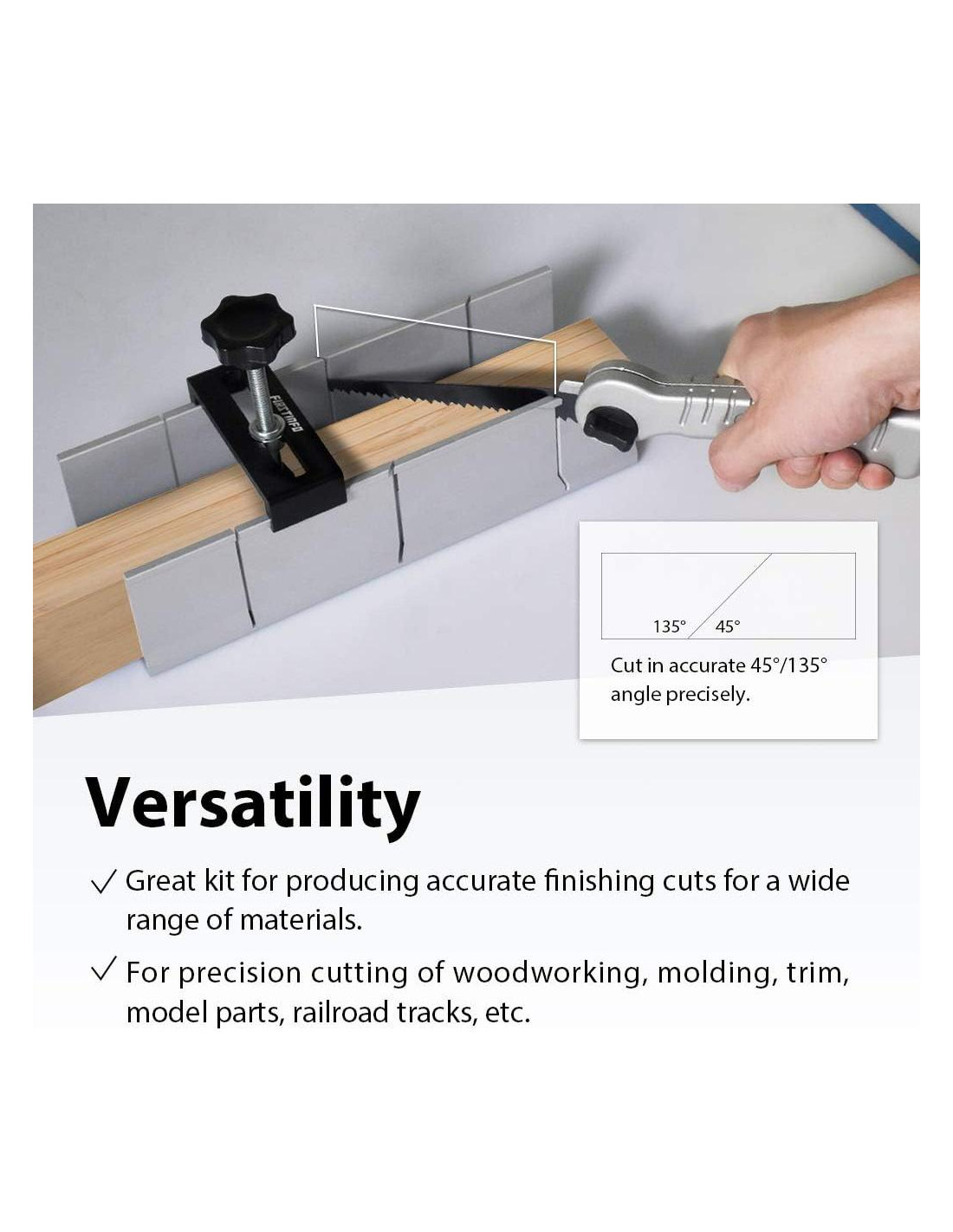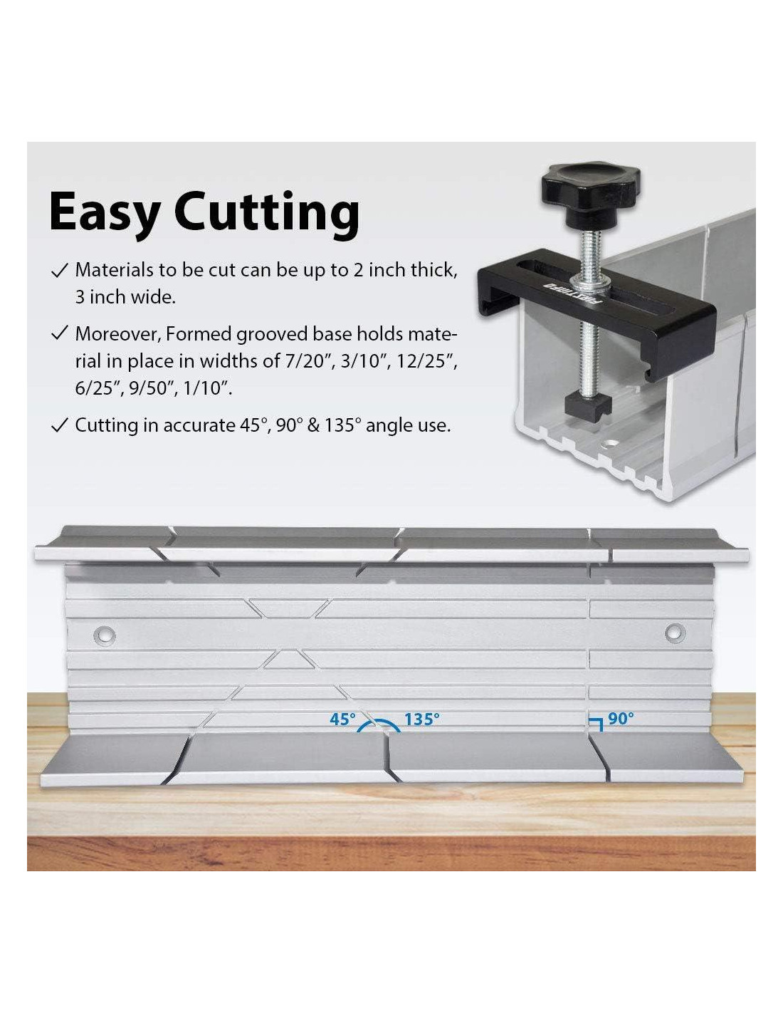 - Construcción de aluminio más resistente para uso portátil y duradero: calidad de herramienta profesional e ideal para proyectos de molduras y enmarcados de bricolaje en el hogar o lugar de trabajo. Esta caja de inglete miniatura premium acepta madera, plástico y metales.