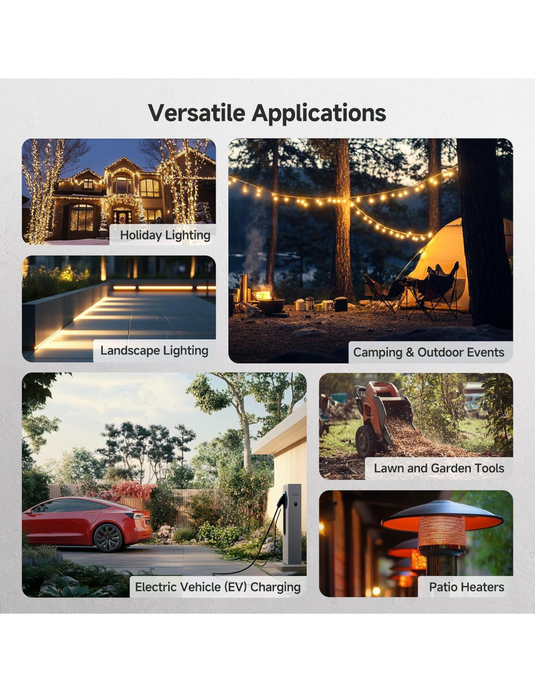 - Protección Impermeable y a Prueba de Climas: Esta caja eléctrica exterior impermeable está diseñada para proteger tus dispositivos, incluyendo regletas, extensiones y enchufes, de condiciones climáticas adversas como lluvia, nieve y suciedad. Nota: Esta caja no debe ser sumergida en agua ni enterrada. Para un rendimiento óptimo, coloca la caja horizontalmente.