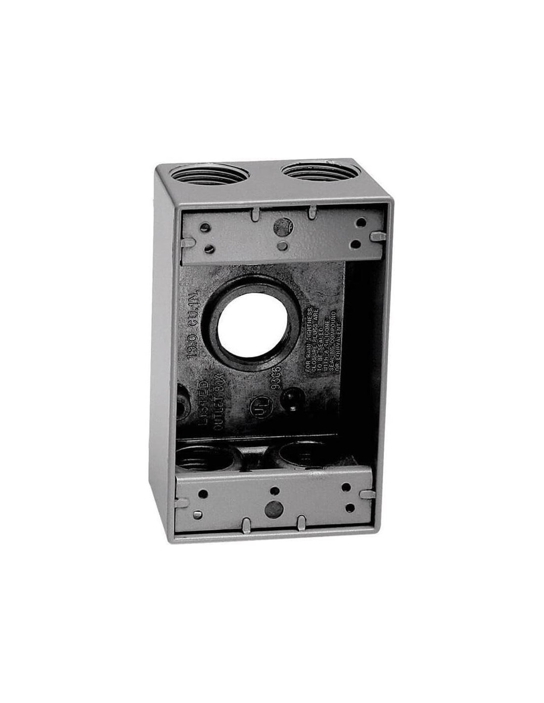 Las cajas de 1-gang a prueba de clima de Sigma proporcionan una conexión para conductos y pueden albergar un dispositivo cableado único como un receptáculo o interruptor. La construcción robusta y fundida a presión previene la penetración de humedad, haciendo que las cajas sean adecuadas para ubicaciones húmedas, mojadas o secas. Las cajas están recubiertas en polvo para resistencia a la corrosión y cuentan con un tornillo de tierra para una instalación segura. Las cajas incluyen hardware, tapones de cierre y un tornillo de tierra preinstalado.