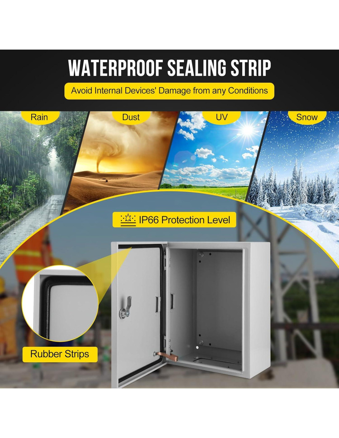 - SELLADO A PRUEBA DE AGUA: Equipado con tiras de sellado de goma, la caja de conexiones con bisagra previene eficazmente la entrada de agua de lluvia, protegiendo los componentes eléctricos internos. Con una clasificación de protección IP66 y un tornillo de puesta a tierra, la caja eléctrica de acero asegura una seguridad eléctrica y del producto óptima