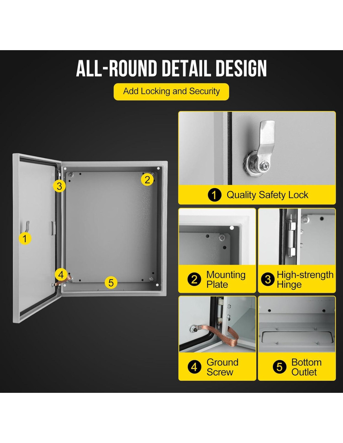 - FÁCIL INSTALACIÓN: Con una placa de montaje trasera galvanizada removible, la caja de enclosure metálica simplifica la instalación de componentes eléctricos. Completa con accesorios esenciales y cuatro agujeros de montaje en la pared en la parte posterior, asegurar la caja eléctrica a la pared es un proceso sencillo